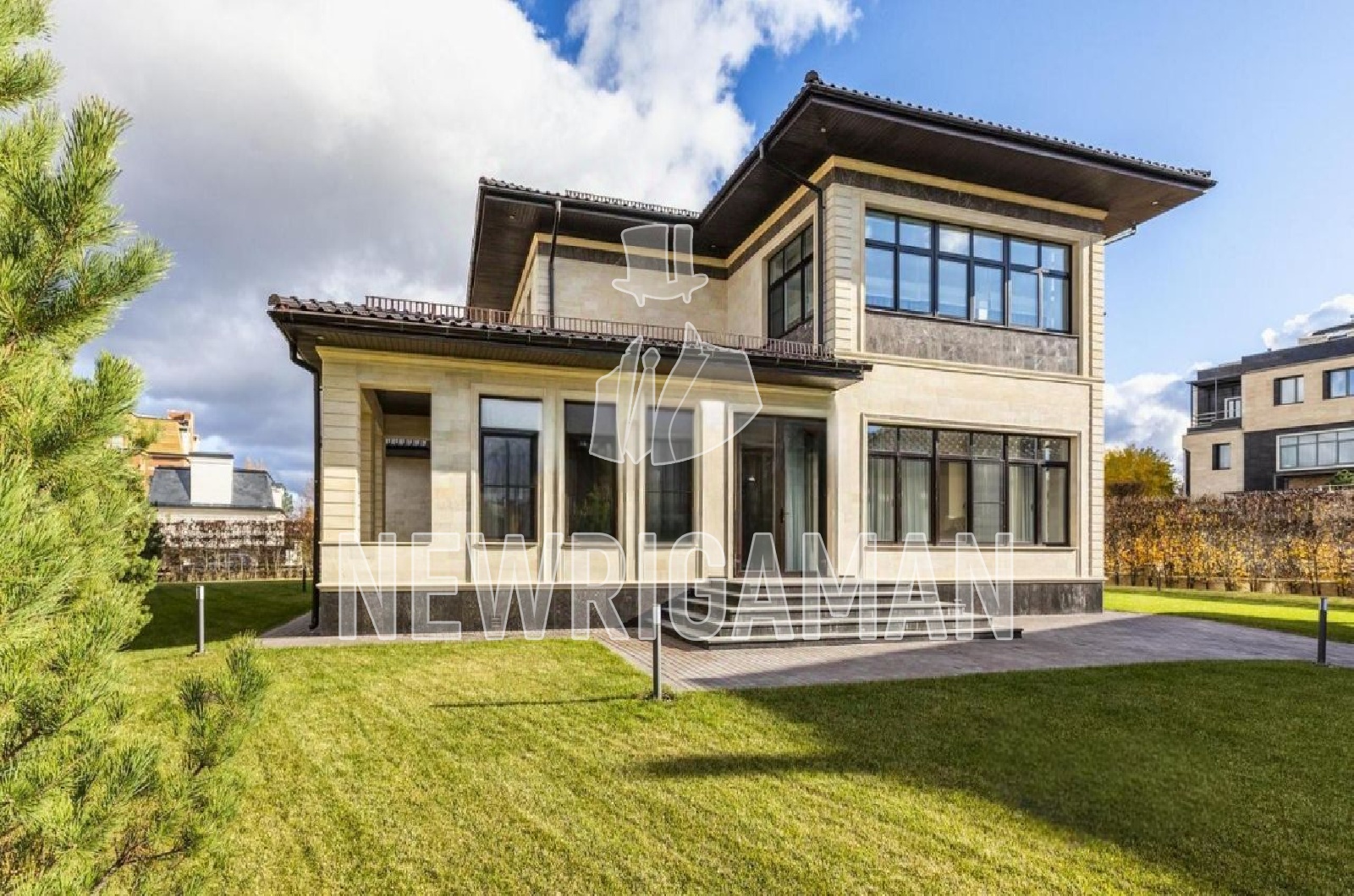Продажа загородного дома общей площадью 520 кв.м. Новорижское шоссе, 19 км от МКАД. Коттеджный поселок Миллениум Парк. Дом построен в 2 этажа из кирпича. Дом с панорамным остеклением, под ключ без мебели. При строительстве и отделке использовались дорогостоящие материалы, установлены качественные инженерные системы. На участке 17,5 соток выполнен прекрасный ландшафтный дизайн: ухоженный газон, проложены дорожки с декоративным освещением, по всему периметру высажены хвойные и лиственные деревья. Отдельно построен гостевой дом. Есть встроенный гараж на 2 м/м.