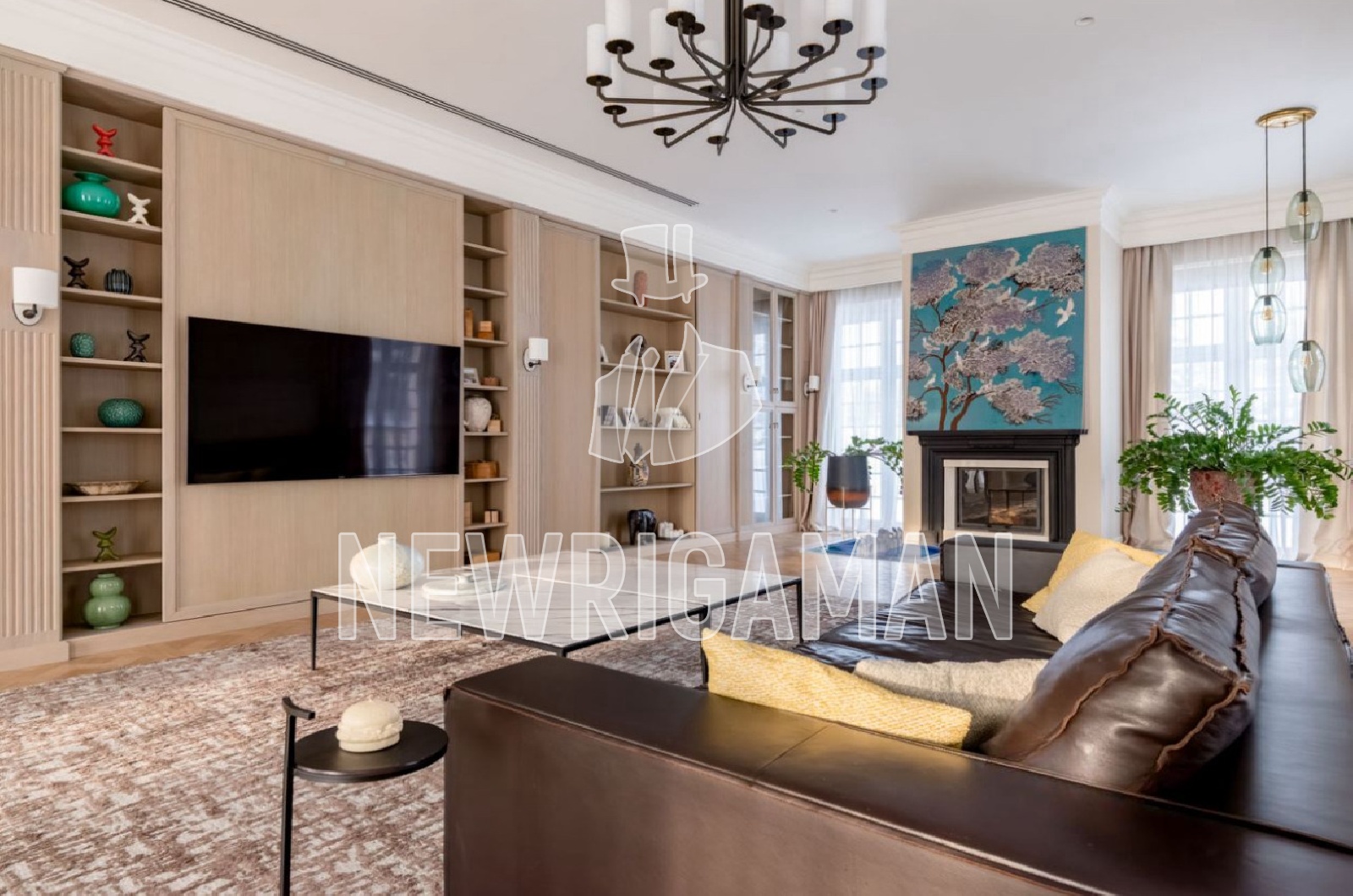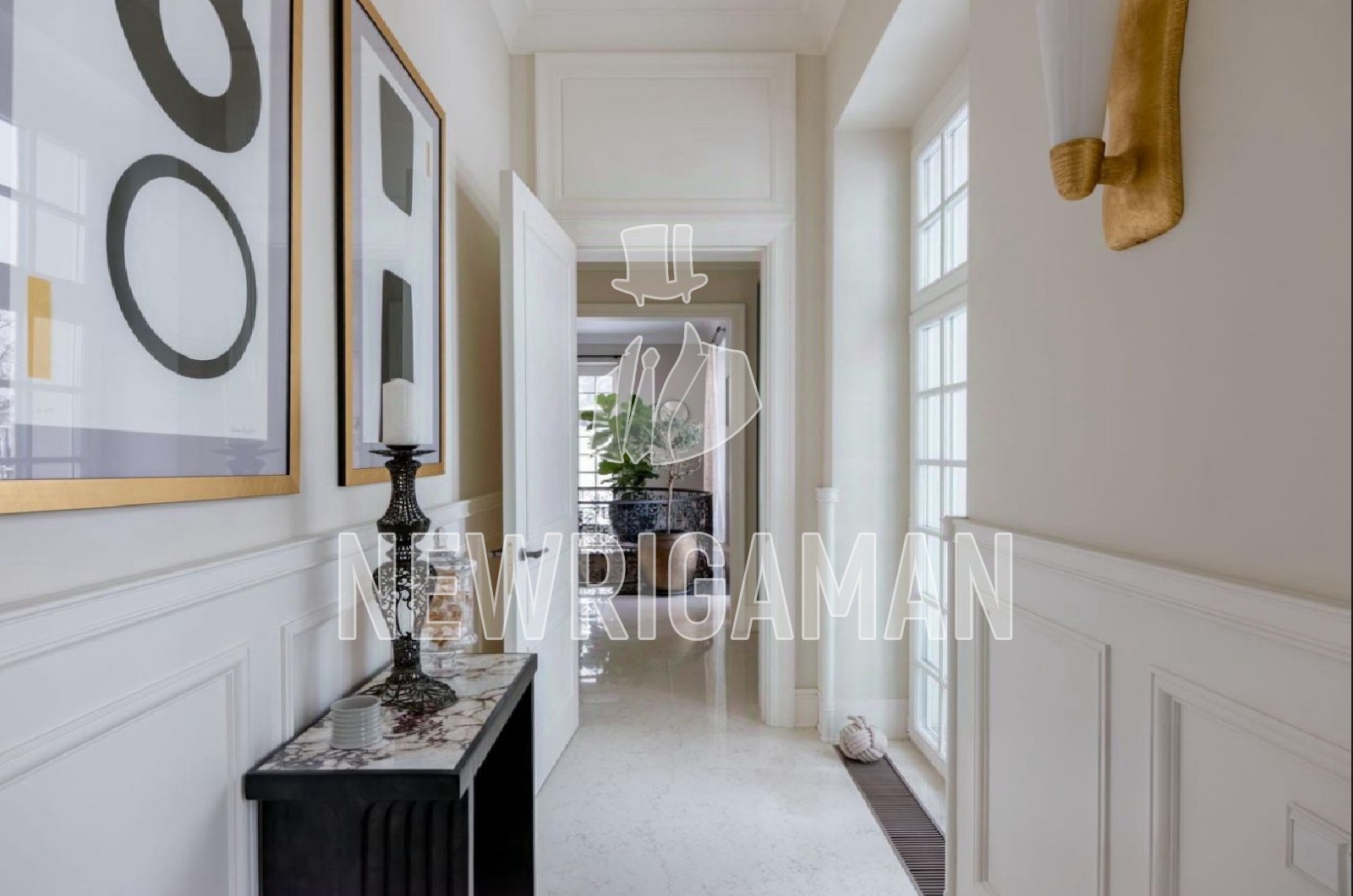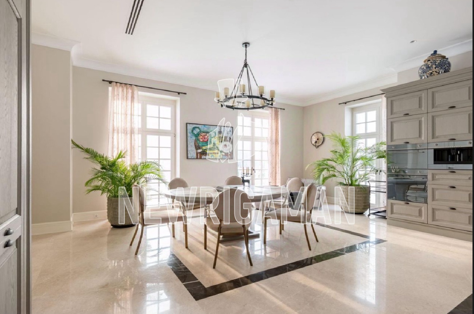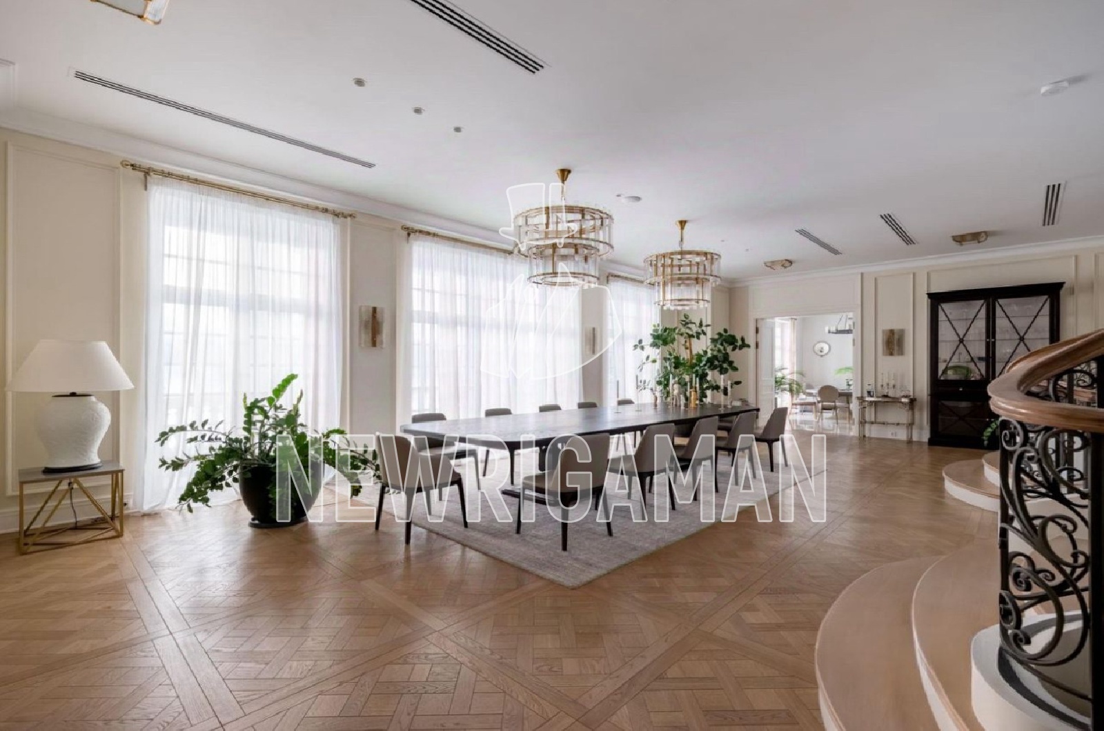 1 этаж - холл, просторная кухня-гостиная, столовая, гостиная с камином и выходом на террасу, ванные, гардеробные и кладовые комнаты,
