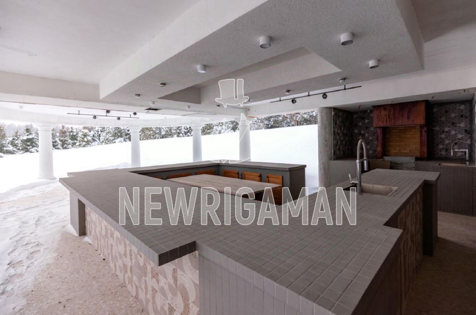 Цоколь - бассейн 12 метров с видом и выходом на участок, сауна, хамам, русская бан, комната отдыха, гостиная, 3 ванные комнаты, гараж на 12 м/м, технические помещения, постирочная, 2-х комнатная квартира для персонала с отдельным входом.