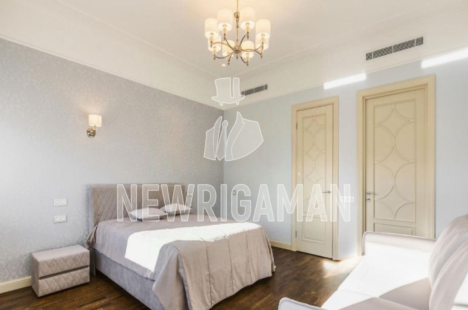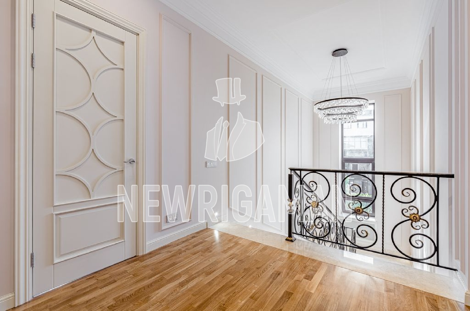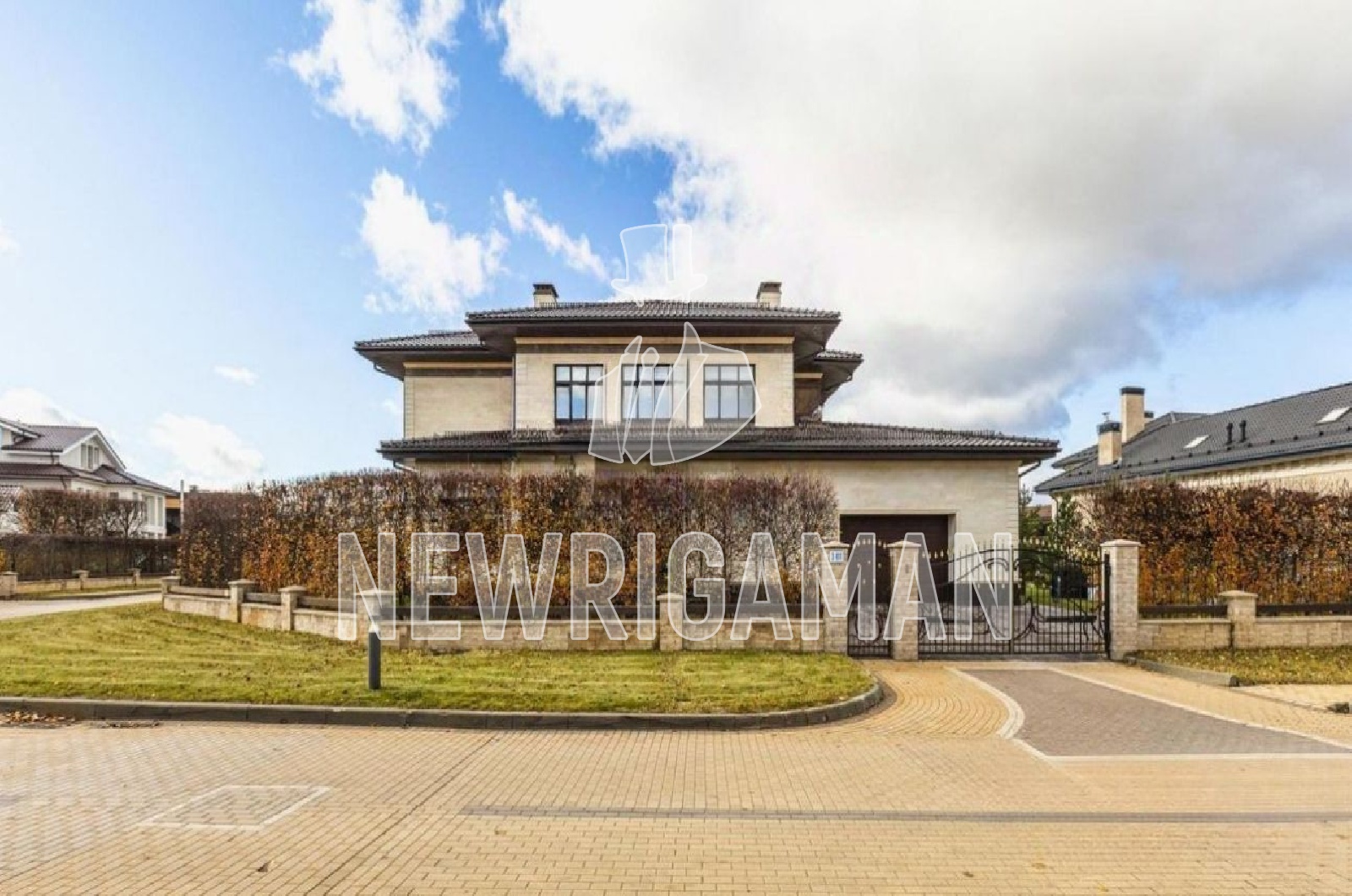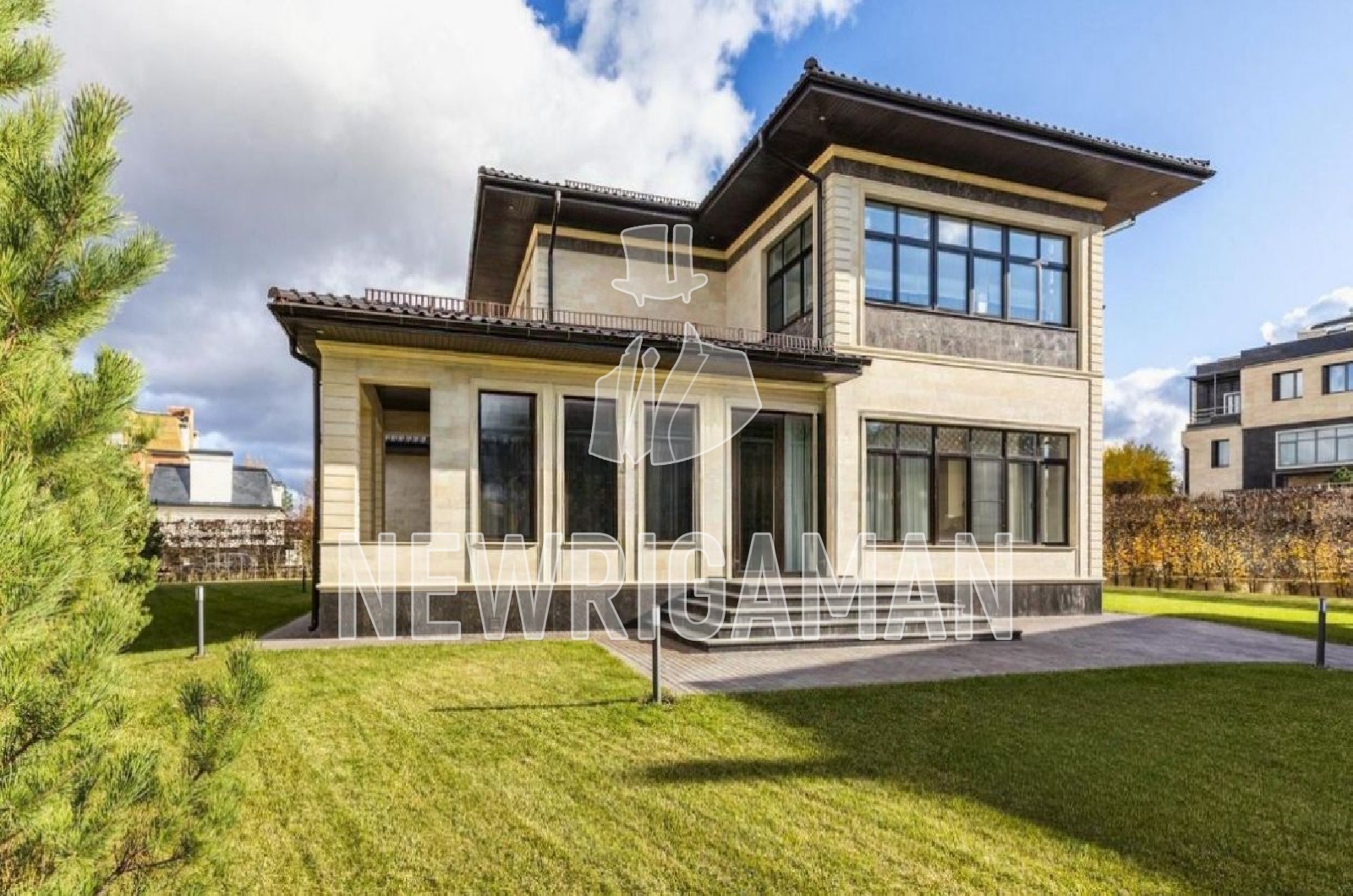Аренда загородного дома общей площадью 520 кв.м. Коттеджный поселок Миллениум  Парк. Новорижское шоссе, 19 км от МКАД. Дом построен в 2 этажа из кирпича. При строительстве и отделке использовались дорогостоящие материалы, установлены качественные инженерные системы. Шикарный дизайнерский интерьер в стиле современной классики полностью укомплектован стильной мебелью. Кухня оборудована всей необходимой бытовой техникой известных брендов. Удобная планировка отлично подойдет для большой семьи. На участке 17,5 соток выполнен прекрасный ландшафтный дизайн: ухоженный газон, проложены дорожки с декоративным освещением, по всему периметру высажены хвойные и лиственные деревья. Отдельно построен гостевой дом. Есть встроенный гараж на 2 м/м.