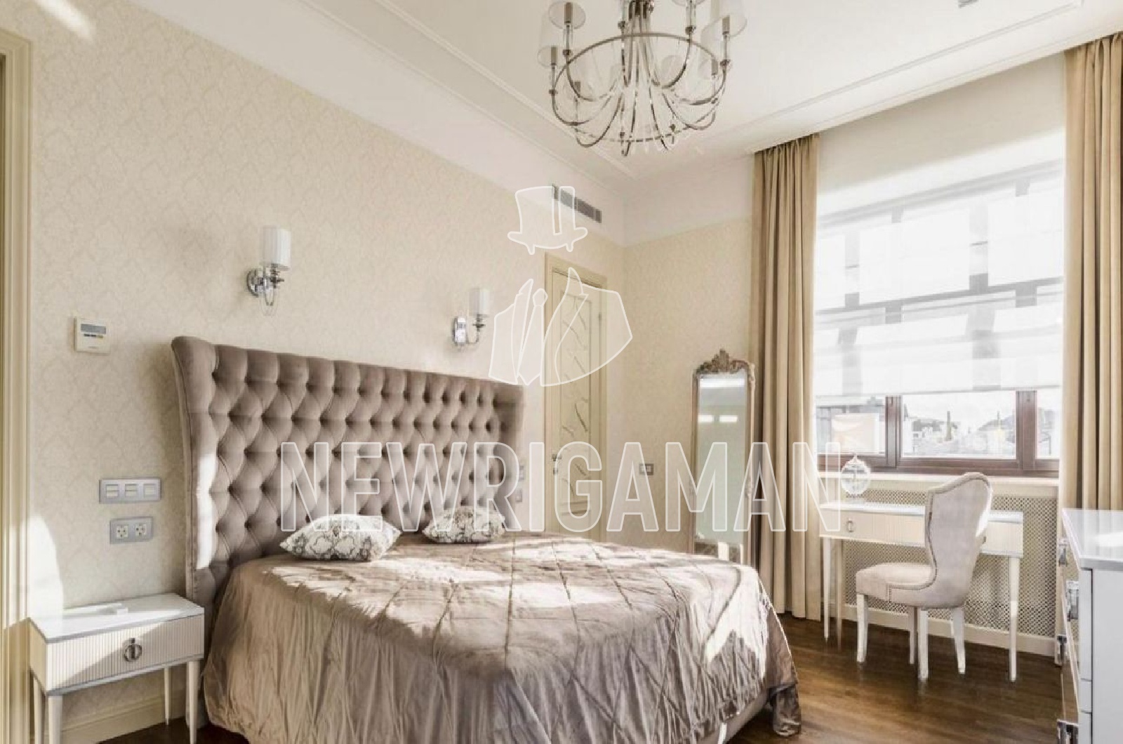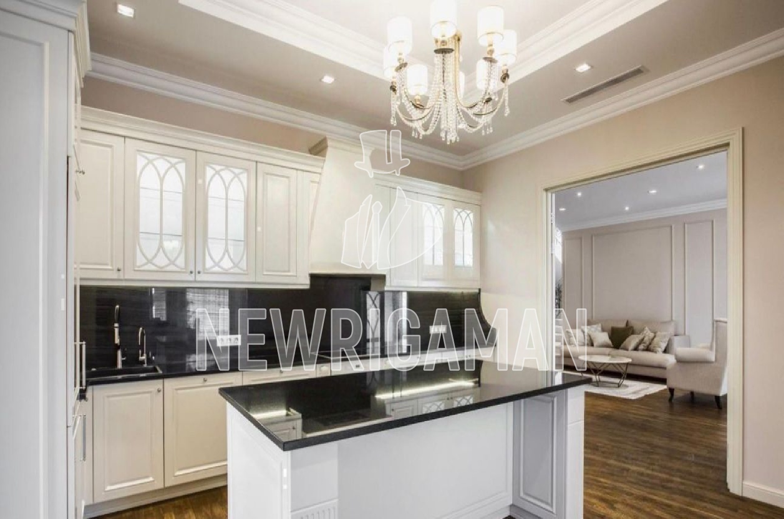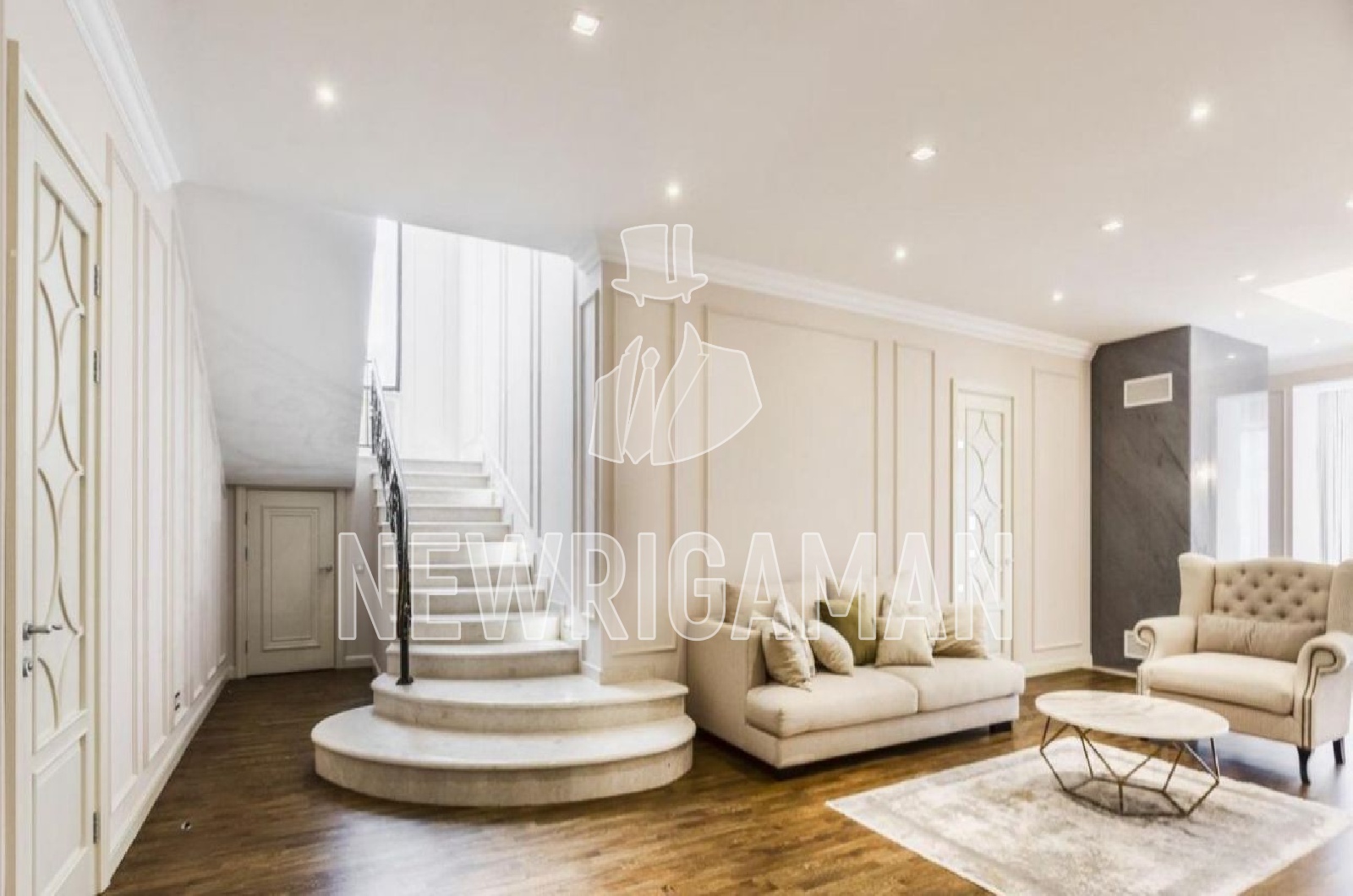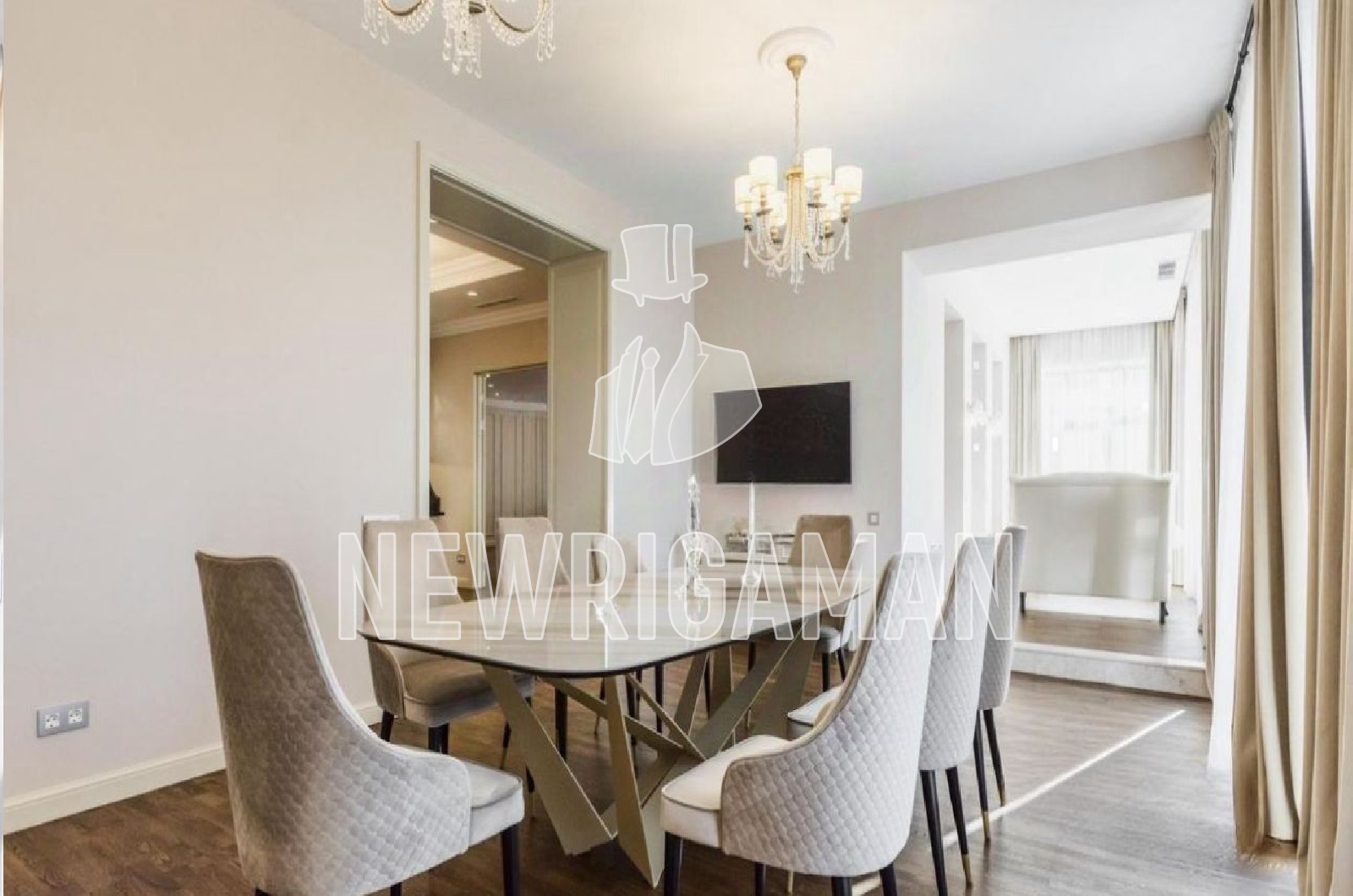 Аренда загородного дома общей площадью 520 кв.м. Коттеджный поселок Миллениум  Парк. Новорижское шоссе, 19 км от МКАД. Дом построен в 2 этажа из кирпича. При строительстве и отделке использовались дорогостоящие материалы, установлены качественные инженерные системы. Шикарный дизайнерский интерьер в стиле современной классики полностью укомплектован стильной мебелью. Кухня оборудована всей необходимой бытовой техникой известных брендов. Удобная планировка отлично подойдет для большой семьи. На участке 17,5 соток выполнен прекрасный ландшафтный дизайн: ухоженный газон, проложены дорожки с декоративным освещением, по всему периметру высажены хвойные и лиственные деревья. Отдельно построен гостевой дом. Есть встроенный гараж на 2 м/м.