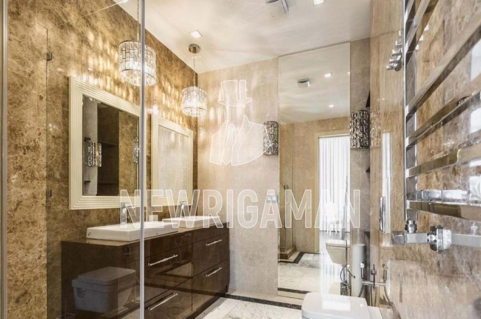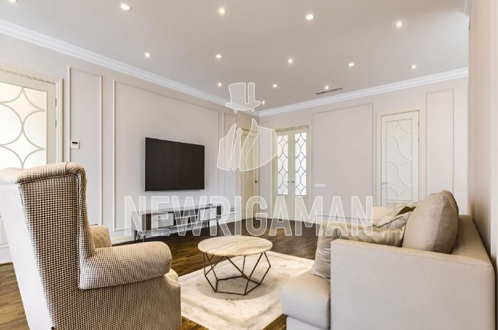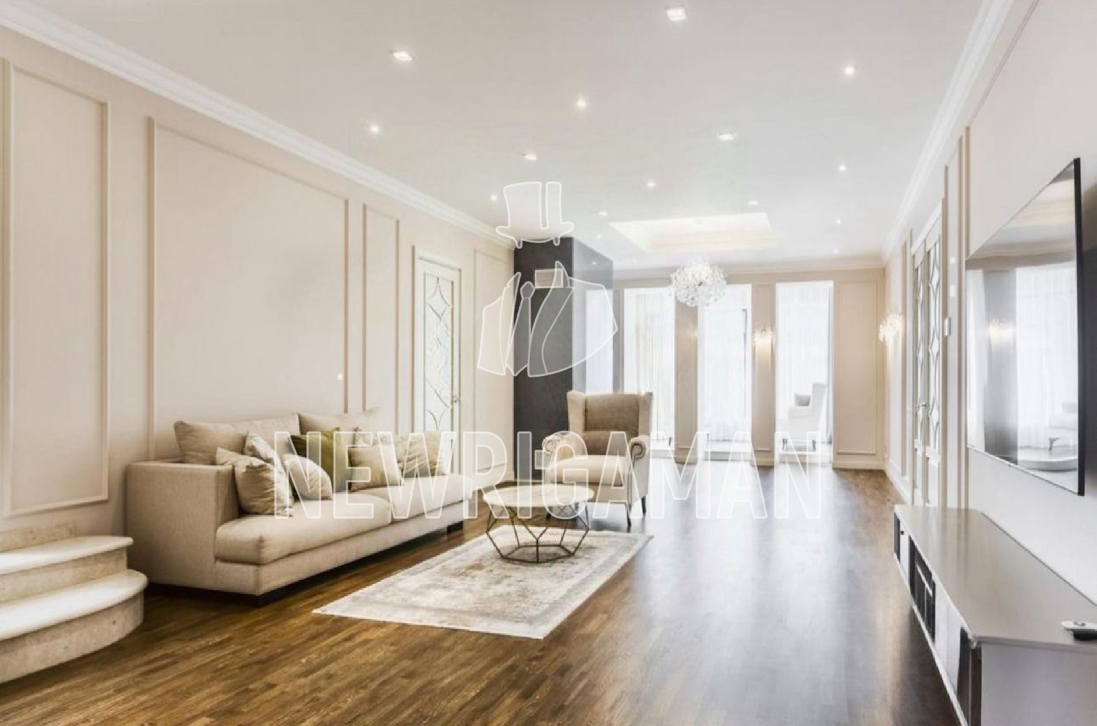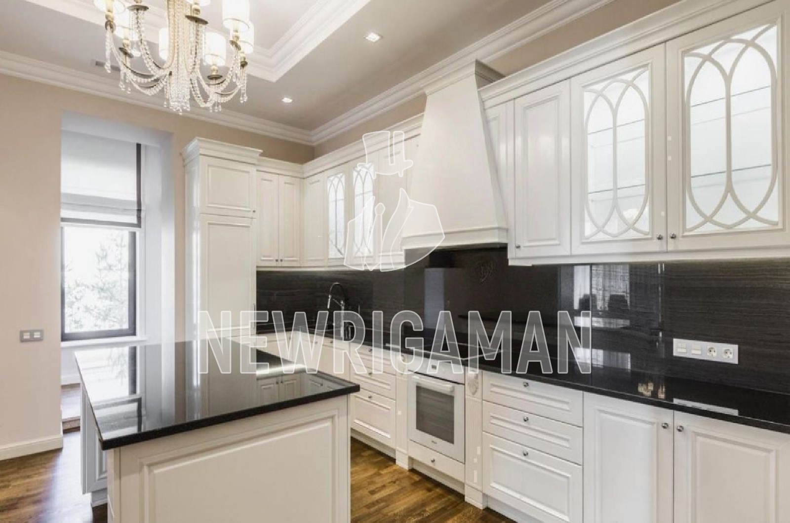 Аренда загородного дома общей площадью 520 кв.м. Коттеджный поселок Миллениум  Парк. Новорижское шоссе, 19 км от МКАД. Дом построен в 2 этажа из кирпича. При строительстве и отделке использовались дорогостоящие материалы, установлены качественные инженерные системы. Шикарный дизайнерский интерьер в стиле современной классики полностью укомплектован стильной мебелью. Кухня оборудована всей необходимой бытовой техникой известных брендов. Удобная планировка отлично подойдет для большой семьи. На участке 17,5 соток выполнен прекрасный ландшафтный дизайн: ухоженный газон, проложены дорожки с декоративным освещением, по всему периметру высажены хвойные и лиственные деревья. Отдельно построен гостевой дом. Есть встроенный гараж на 2 м/м.