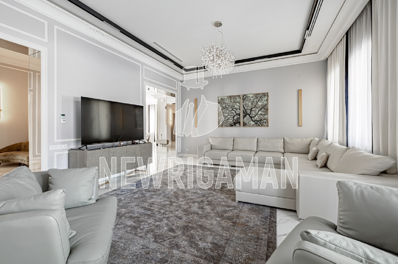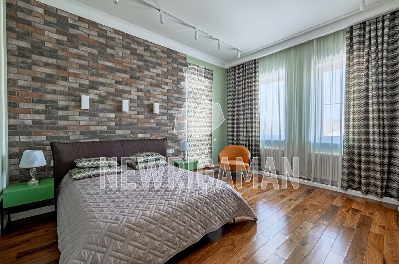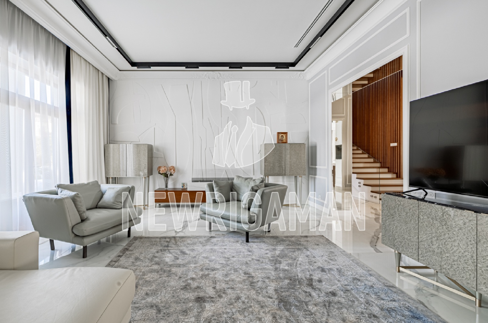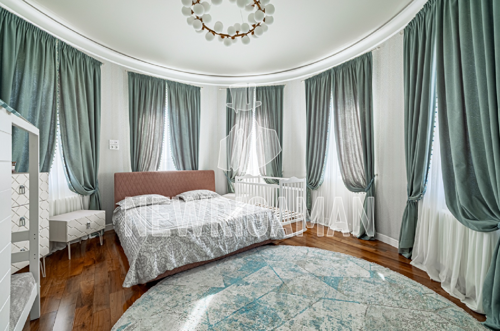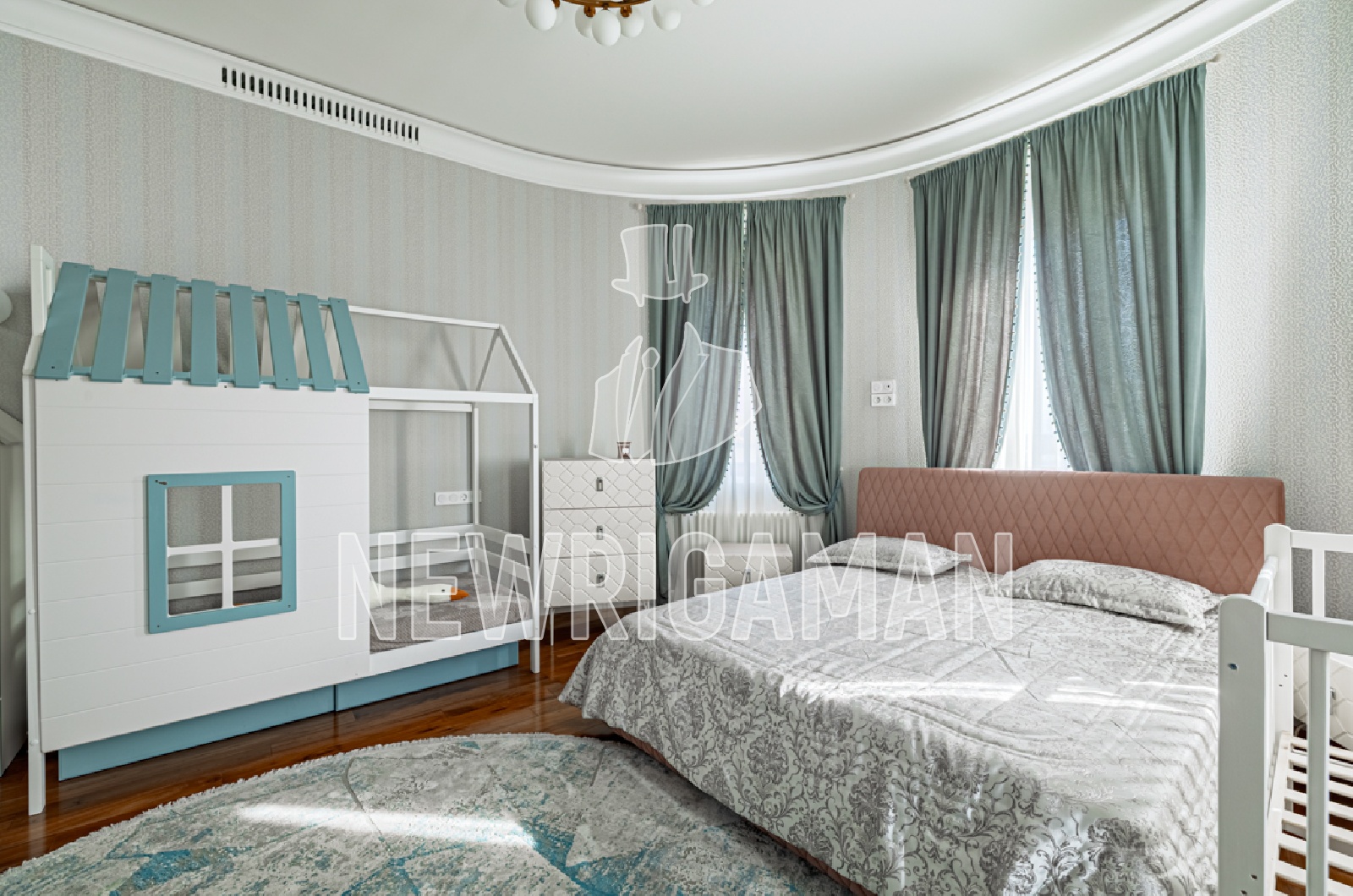 Продажа загородного дома общей площадью 1100 кв.м. Новорижское шоссе, 19 км от МКАД. Коттеджный поселок Миллениум парк. Дом построен в 2 этажа в классическом стиле. ВАвторский дизайнерский ремонт выполнен в стиле современной классики, где каждая деталь продумана до мелочей. В отделке - натуральный камень, дерево, лепнина ручной работы. Мебель, текстиль подобраны в единой концепции: лаконичные формы, благородные оттенки, высокое качество исполнения. Бытовая техника MIELE, ASKO. На участке 27 соток выполнен ландшафтный дизайн с системой автополива и освещением, разбит сад, оборудована зона отдыха с кострищем. Есть ГАРАЖ на 6 машин и гостевой дом 250 кв.м.