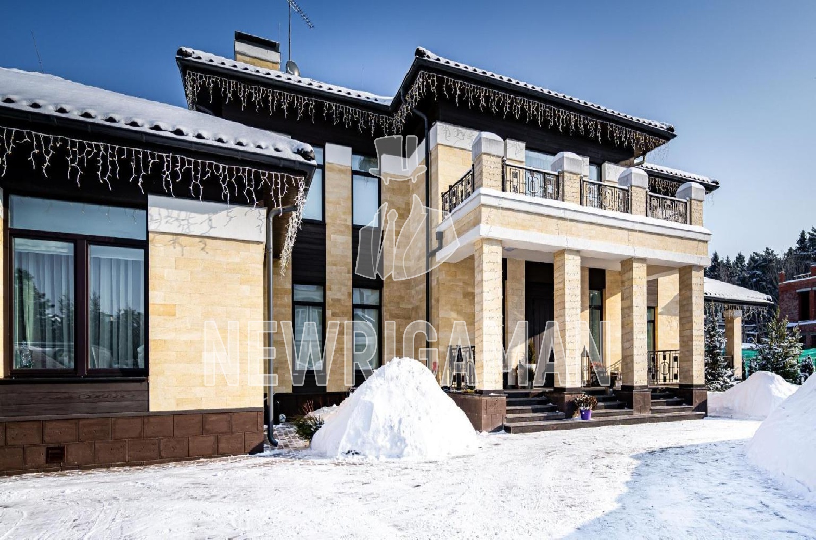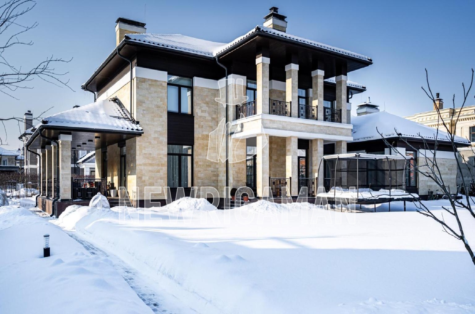 Продажа загородного дома общей площадью 600 кв.м. Новорижское шоссе, 18 км от МКАД. Коттеджный поселок Ренессанс Парк. Коттедж построен в 2 этажа. Под ключ. Фасад дома облицован натуральным камнем, террасы и крыльцо вымощены противоскользящим гранитом. В кухне установлена профессиональная немецкая техника Miele и Liebherr и элитная итальянская мебель Euromobil, финальная обработка которой выполнена вручную. Дом имеет очень эргономичную планировку, из каминного зала и столовой зоны можно выйти на просторную террасу. В отдельном крыле дома находится зона сауны и блок для персонала с 2 комнатами и отдельным входом. Также на участке вымощена просторная парковка для размещения 4 автомобилей. Участок 21 сотка, выполнен ландшафтный дизайн.