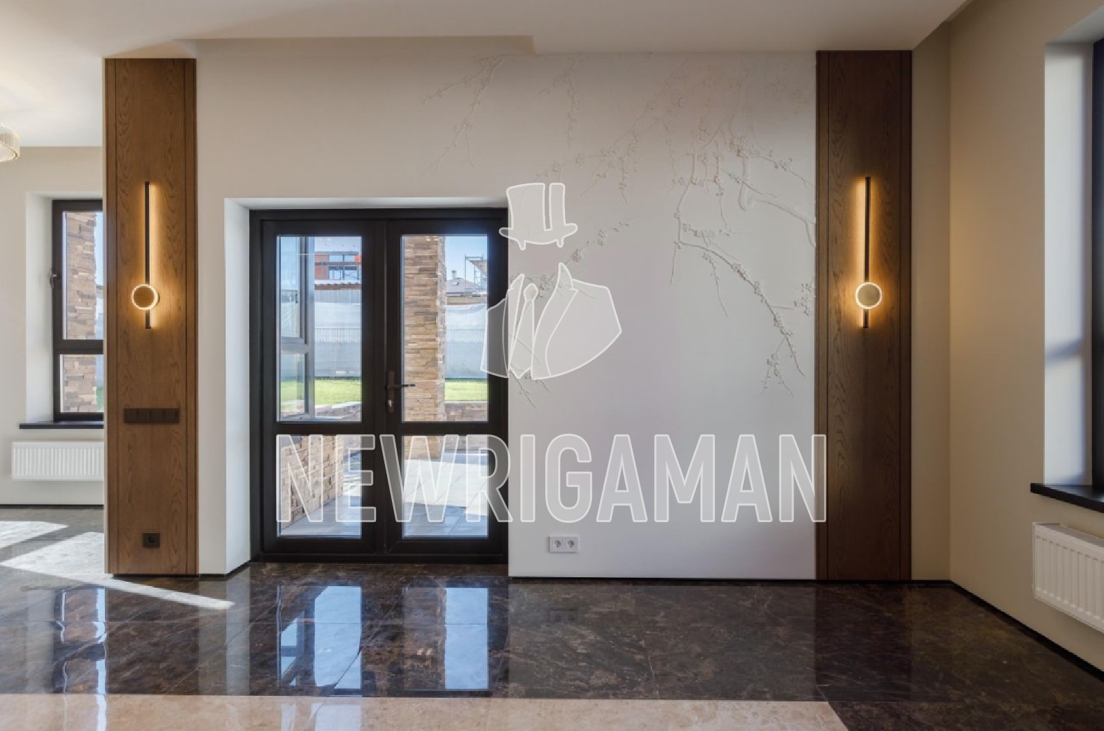 Продажа загородного дома общей площадью 300 кв. м. Новорижское шоссе,23 км. от МКАД, КП Новорижский. Дом построен в 2 этажа на монолитном фундаменте, стены из керамического пустотелого кирпича покрыты декоративной штукатуркой. Фасад декорирован деревом, клинкерной плиткой и искусственным камнем. Все материалы примененные при строительстве 100% экологически чистые. Внутренняя отделка выполняется по авторскому проекту в современном стиле. Используются исключительно натуральные материалы такие как массив дуба, мрамор, керамогранит, кварц. Помимо традиционных инженерных систем в доме установлена система умный дом, централизованное пылеудаление и кондиционирование DAIKIN. На участке 6 соток выполнены ландшафтные работы, смонтирована дренажная система, выведена система полива, обустроены дорожки и площадки из брусчатки. Имеется парковка на 4м/м с автоматическими воротами.