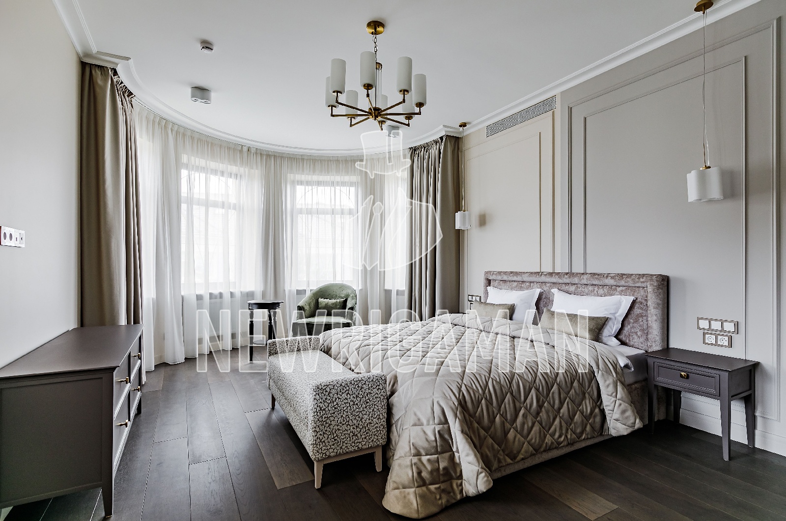 2 этаж - кабинет с балконом, 2 спальни с с/у и гардеробной, хоз. спальня с с/у и 2 гардеробные,
