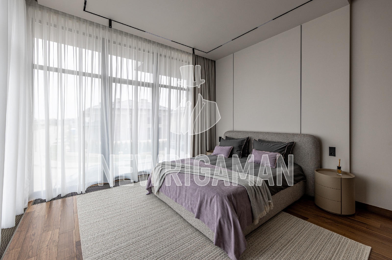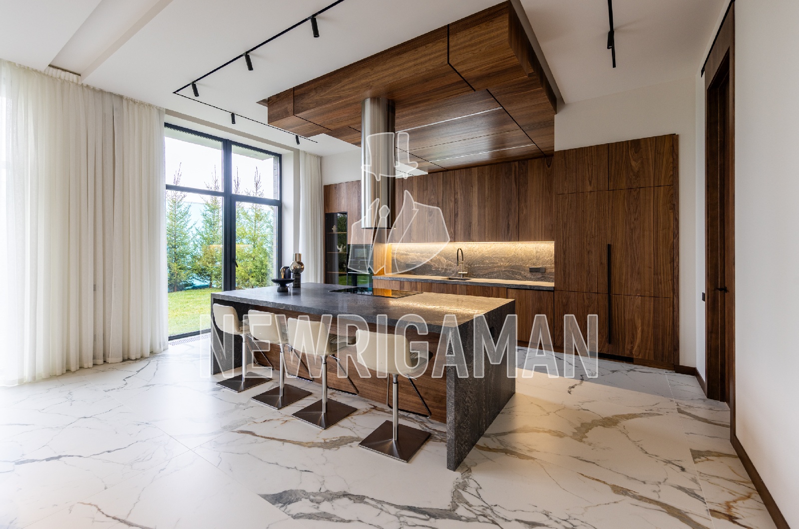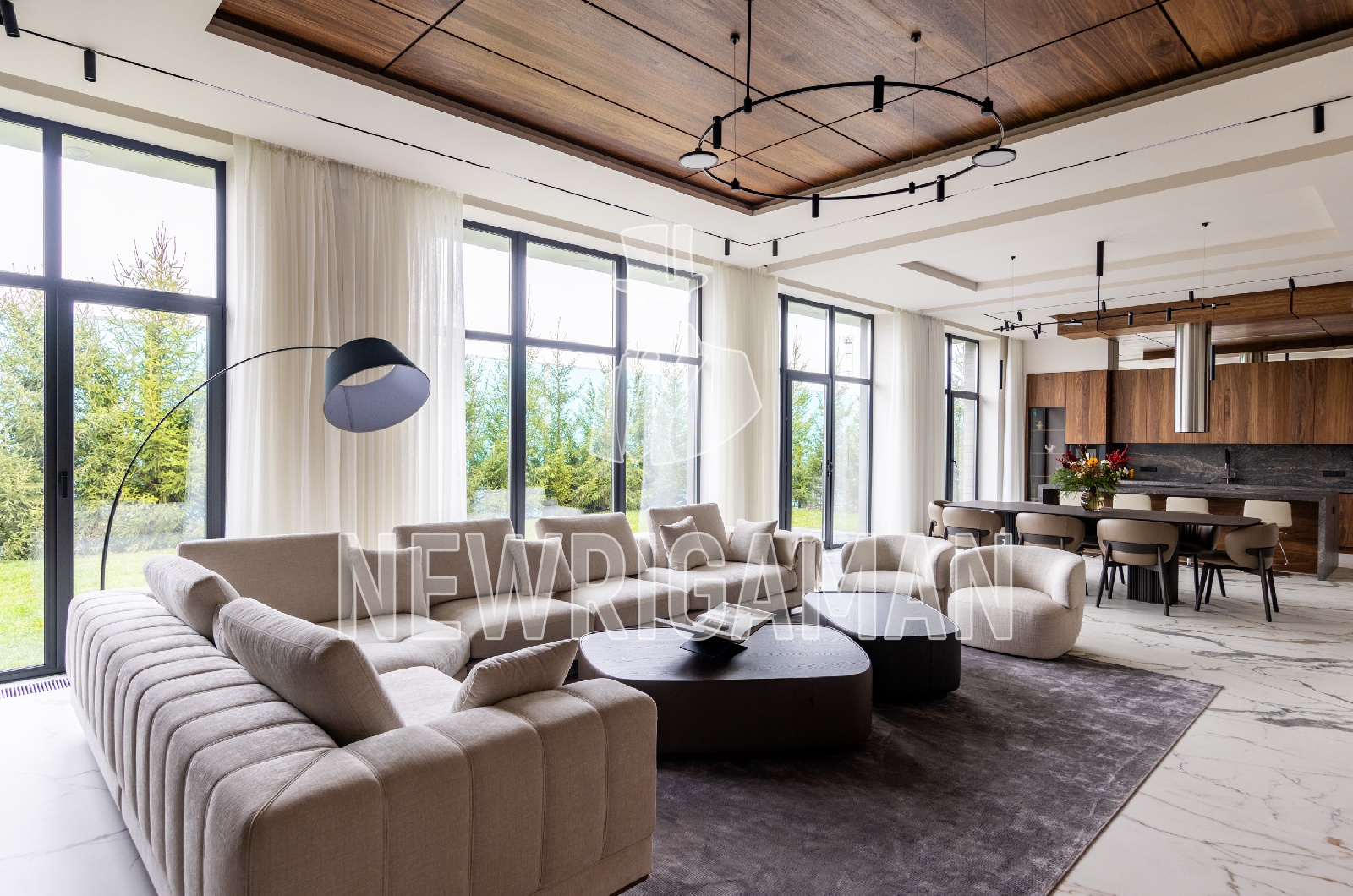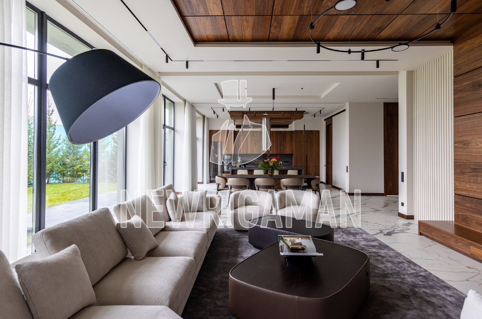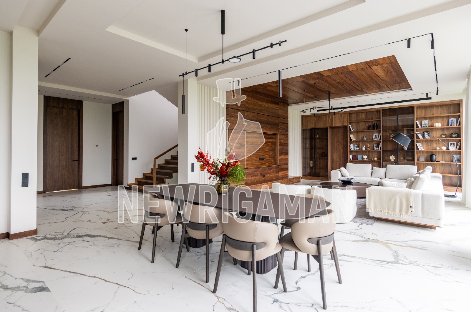 Продажа загородного дома общей площадью 437 кв.м. Новорижское шоссе, 19 км от МКАД. Коттеджный поселок Миллениум парк. Чёткие прямые линии и минималистичный дизайн фасада формируют выразительный и утончённый облик. В облицовке использованы контрастные материалы в сдержанных белых и тёмно-серых тонах с фактурой камня и дерева. Экстерьер подчеркивается декоративной подсветкой. Коттедж оснащён приточно-вытяжной вентиляцией, кондиционированием, подогревом полов и системой умный дом. Интерьеры оформлены в современном стиле, где преобладают мягкие нейтральные оттенки. Натуральные древесные текстуры вносят акценты, добавляя пространству теплоту и сложность. Панорамные окна и многоуровневые потолки с тщательно продуманным освещением создают игру света и тени, создавая атмосферу уюта и гармонии. Дом полностью меблирован и укомплектован техникой от ведущих производителей. Площадь участка 8 соток.