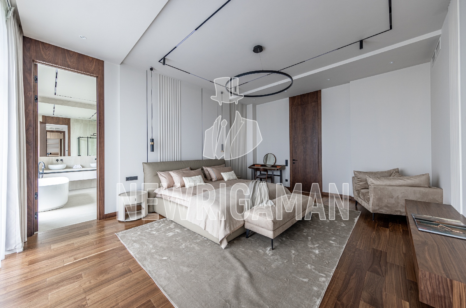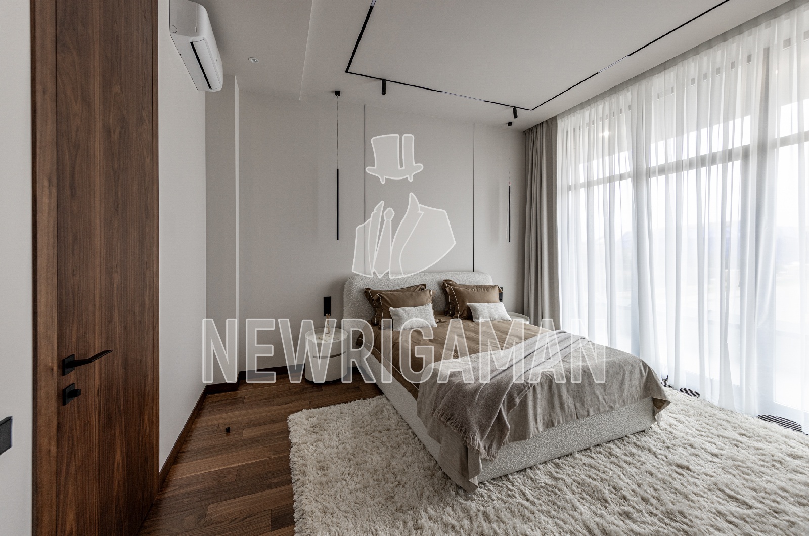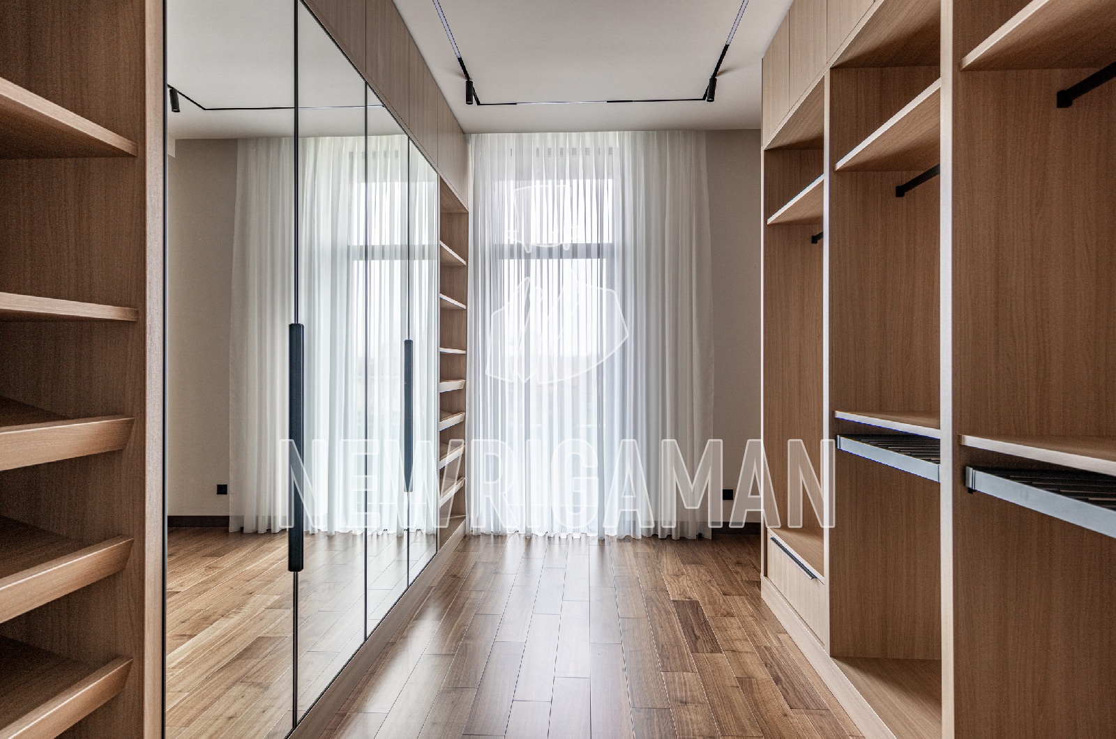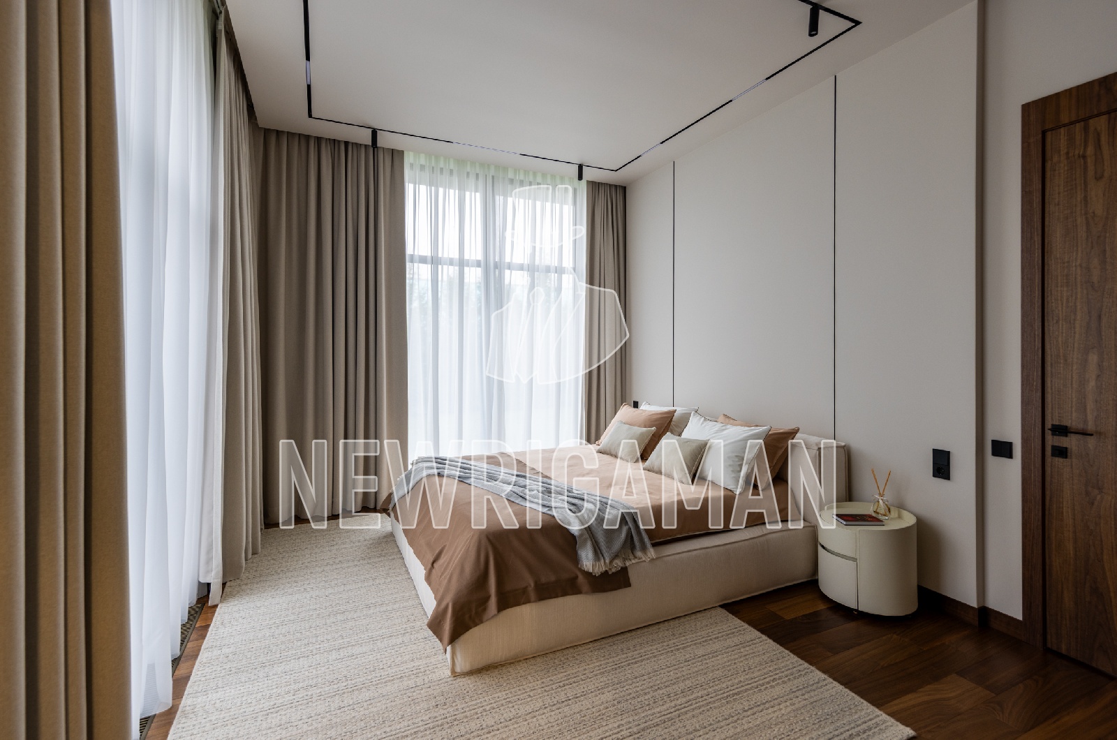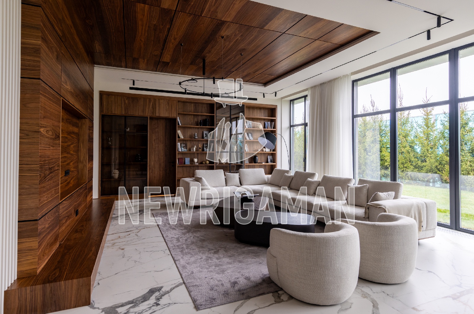 Продажа загородного дома общей площадью 437 кв.м. Новорижское шоссе, 19 км от МКАД. Коттеджный поселок Миллениум парк. Чёткие прямые линии и минималистичный дизайн фасада формируют выразительный и утончённый облик. В облицовке использованы контрастные материалы в сдержанных белых и тёмно-серых тонах с фактурой камня и дерева. Экстерьер подчеркивается декоративной подсветкой. Коттедж оснащён приточно-вытяжной вентиляцией, кондиционированием, подогревом полов и системой умный дом. Интерьеры оформлены в современном стиле, где преобладают мягкие нейтральные оттенки. Натуральные древесные текстуры вносят акценты, добавляя пространству теплоту и сложность. Панорамные окна и многоуровневые потолки с тщательно продуманным освещением создают игру света и тени, создавая атмосферу уюта и гармонии. Дом полностью меблирован и укомплектован техникой от ведущих производителей. Площадь участка 8 соток.