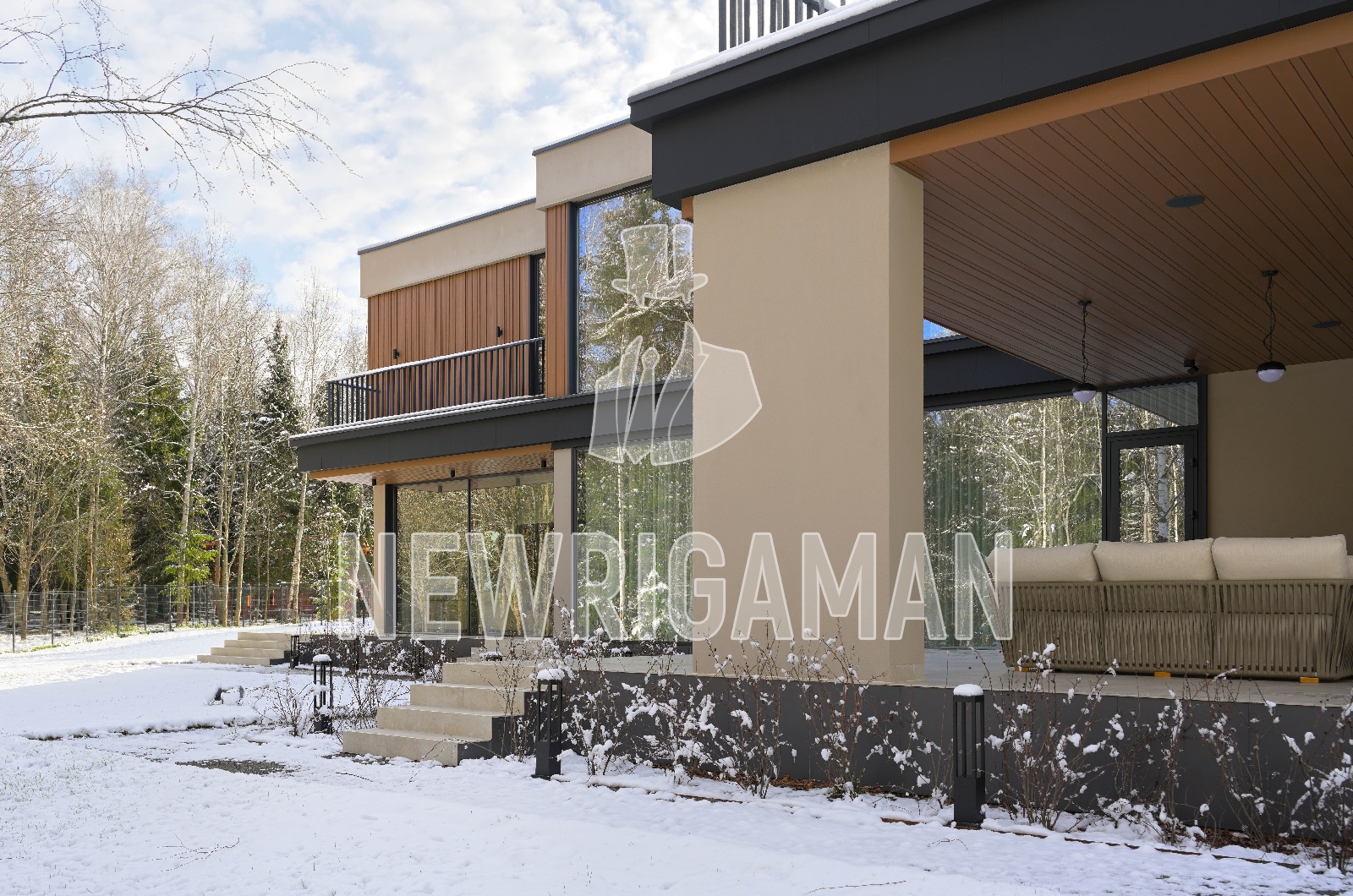 Продажа загородного дома площадью 627 кв. м. Коттеджный поселок Александрово. Новорижское шоссе, 30 км от МКАД. Архитектура Villa Victoria выполнена в стиле Hi-Tech и Contemporary. Дом отличается лаконичными формами, чёткой геометрией и большими панорамными окнами. В отделке фасада использованы современные и долговечные материалы. Панорамное остекление системы Alutech открывает вид на окружающий лес и наполняет дом светом. В интерьере реализован стиль contemporary - это сдержанная элегантность, функциональность и использование натуральных материалов. В отделке интерьера использованы только качественные и износостойкие материалы. Полы на первом этаже выполнены из керамогранита, стены окрашены краской датского бренда Flugger. Дом оборудован современными инженерными системами. Отопление реализовано через внутрипольные конвекторы Eva и газовый котёл Вахі Slim европейского производства. В доме и на участке установлено современное освещение, которое можно регулировать в зависимости от времени суток и настроения. Участок площадью 20 соток полностью благоустроен и идеально вписан в природное окружение. Просторная территория с тремя террасами и двумя балконами подходит как для отдыха, так и для приёма гостей. Из окон открываются виды на лес, а окружающая среда наполняет пространство тишиной и свежестью.