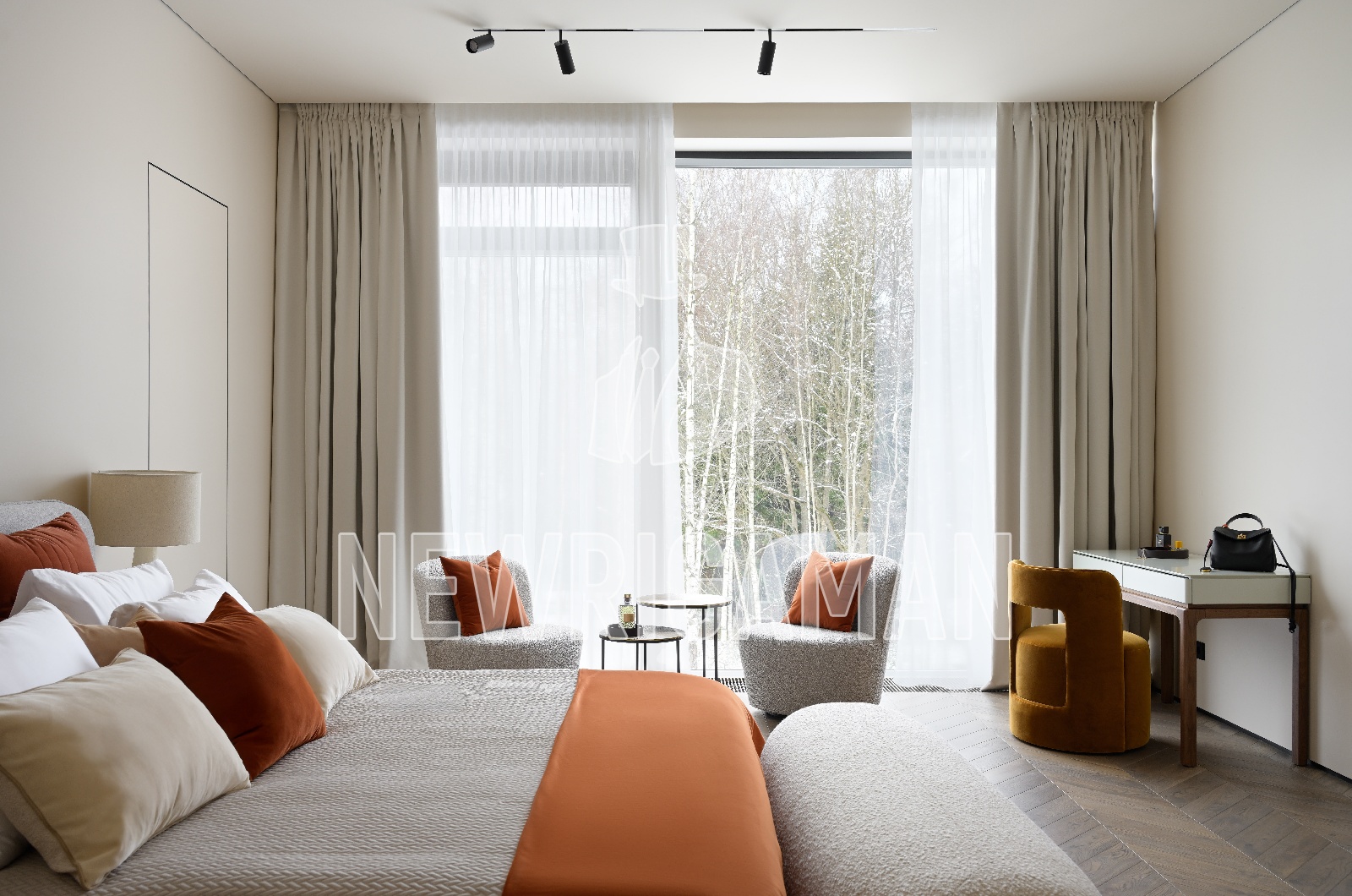 2 этаж - хозяйская спальня, женская и мужская гардеробные, с/у, ванная, постирочная, 3 детские спальни с гардеробными и с/у.