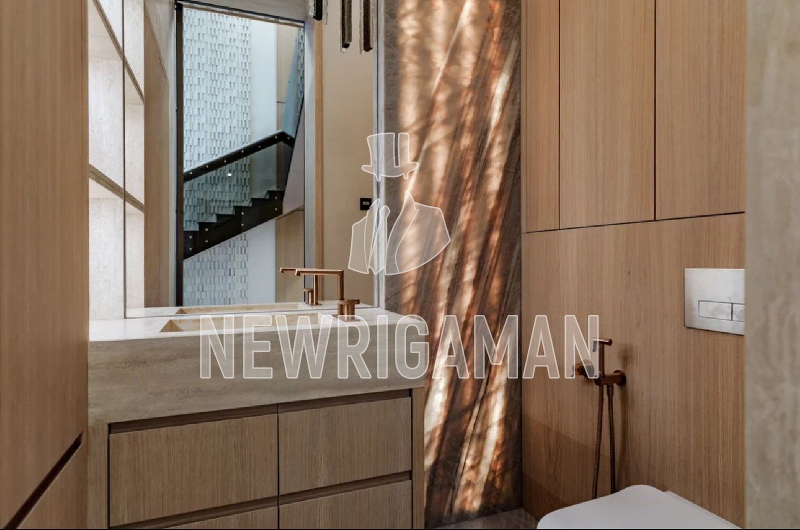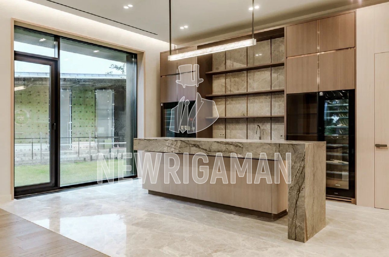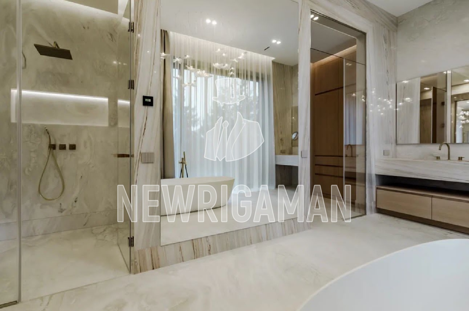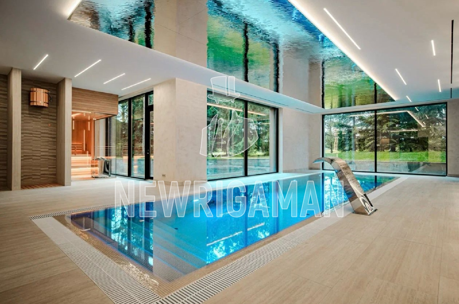 1 этаж - холл, гостиная-кухня-столовая, рабочая кухня, гостевая спальня с гардеробной и с/у, кабинет, гардеробная, гостевой с/у, бассейн, хамам, сауна, душевая, раздевалка, с/у, спортивный зал, серверная, котельная, личный кабинет,