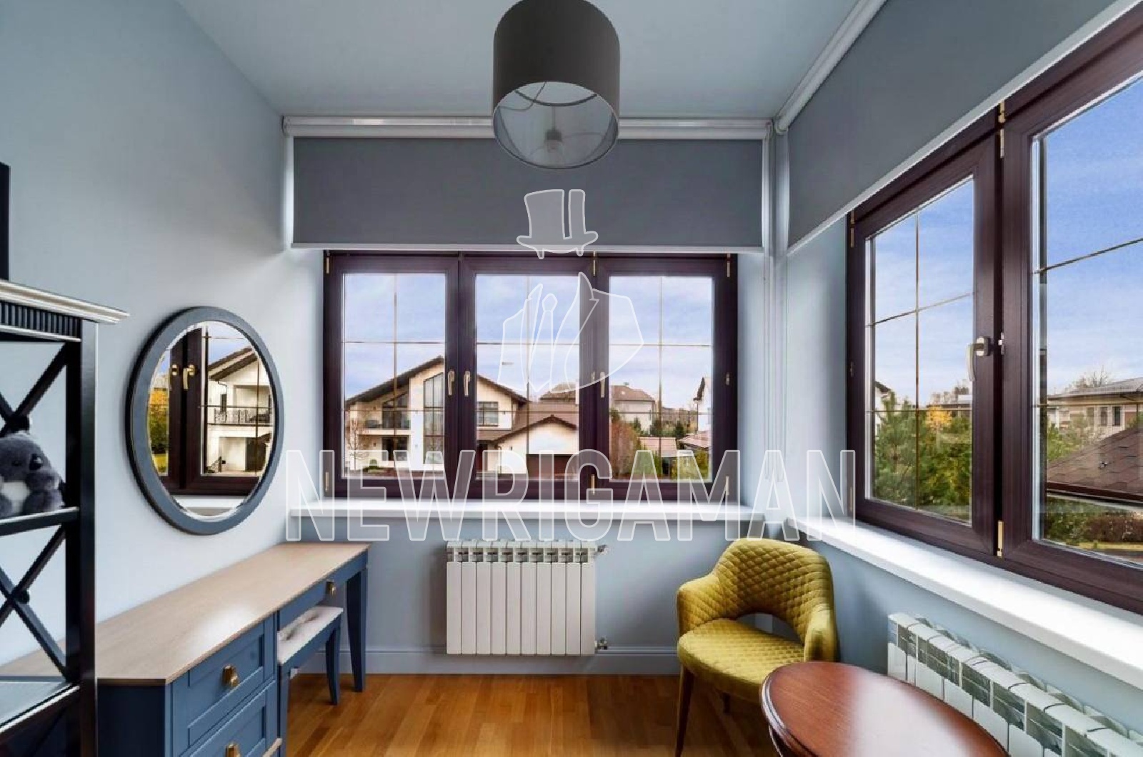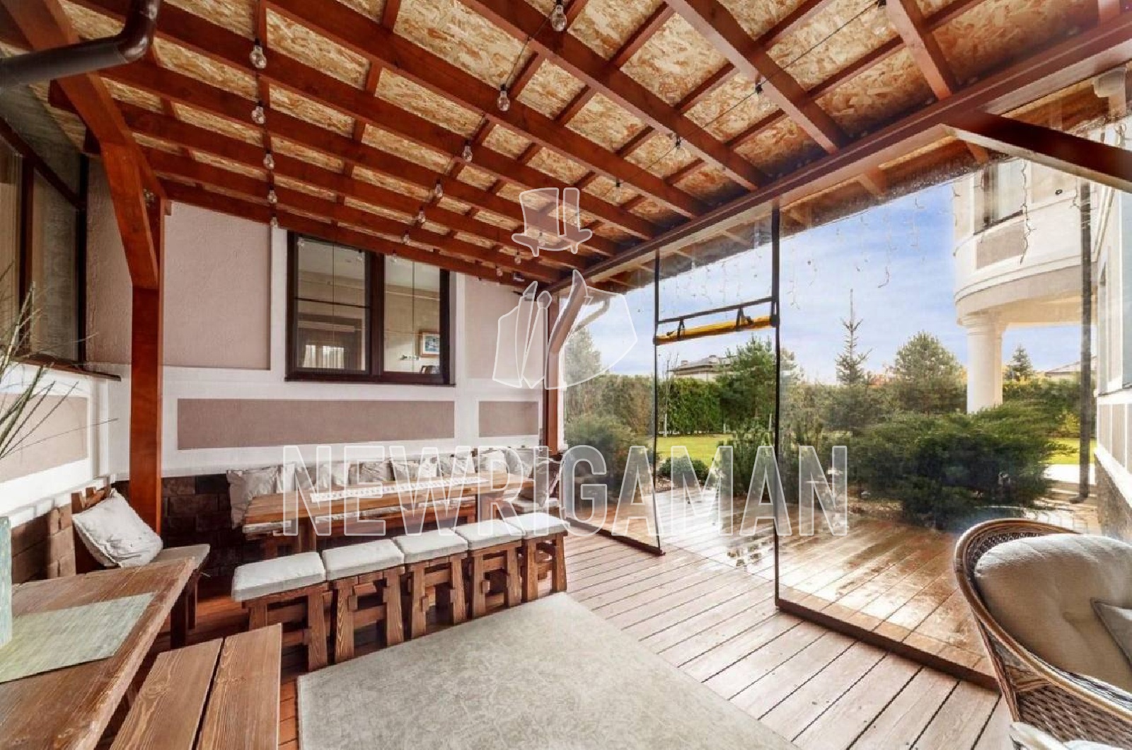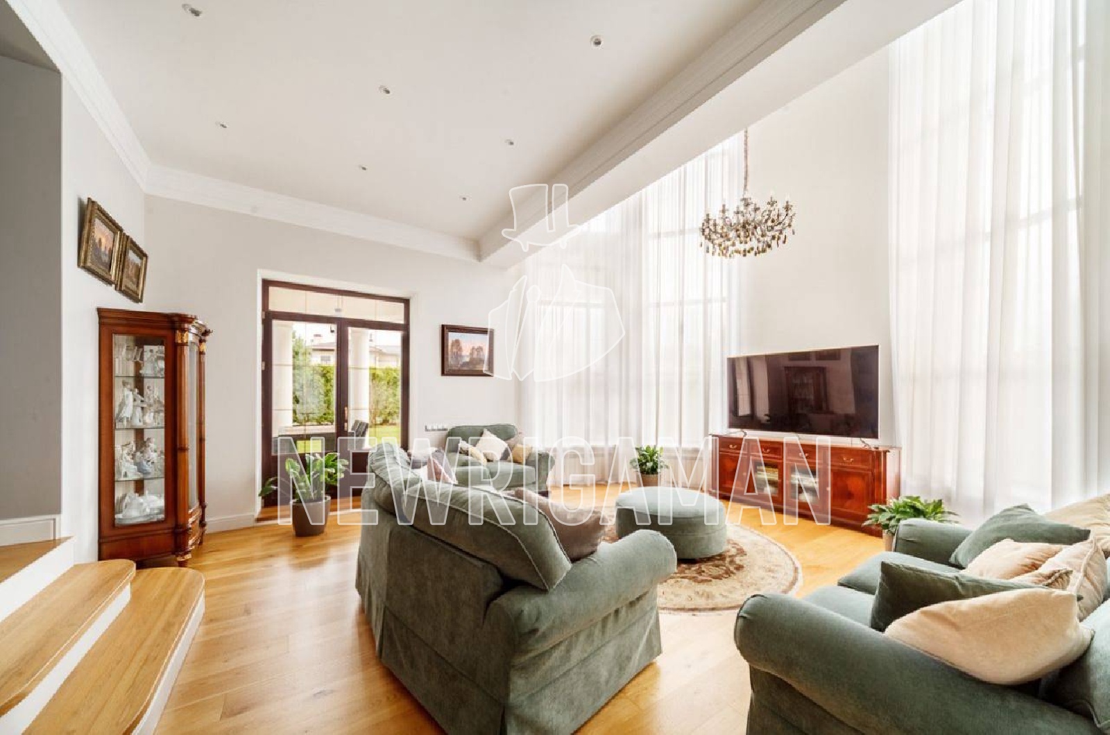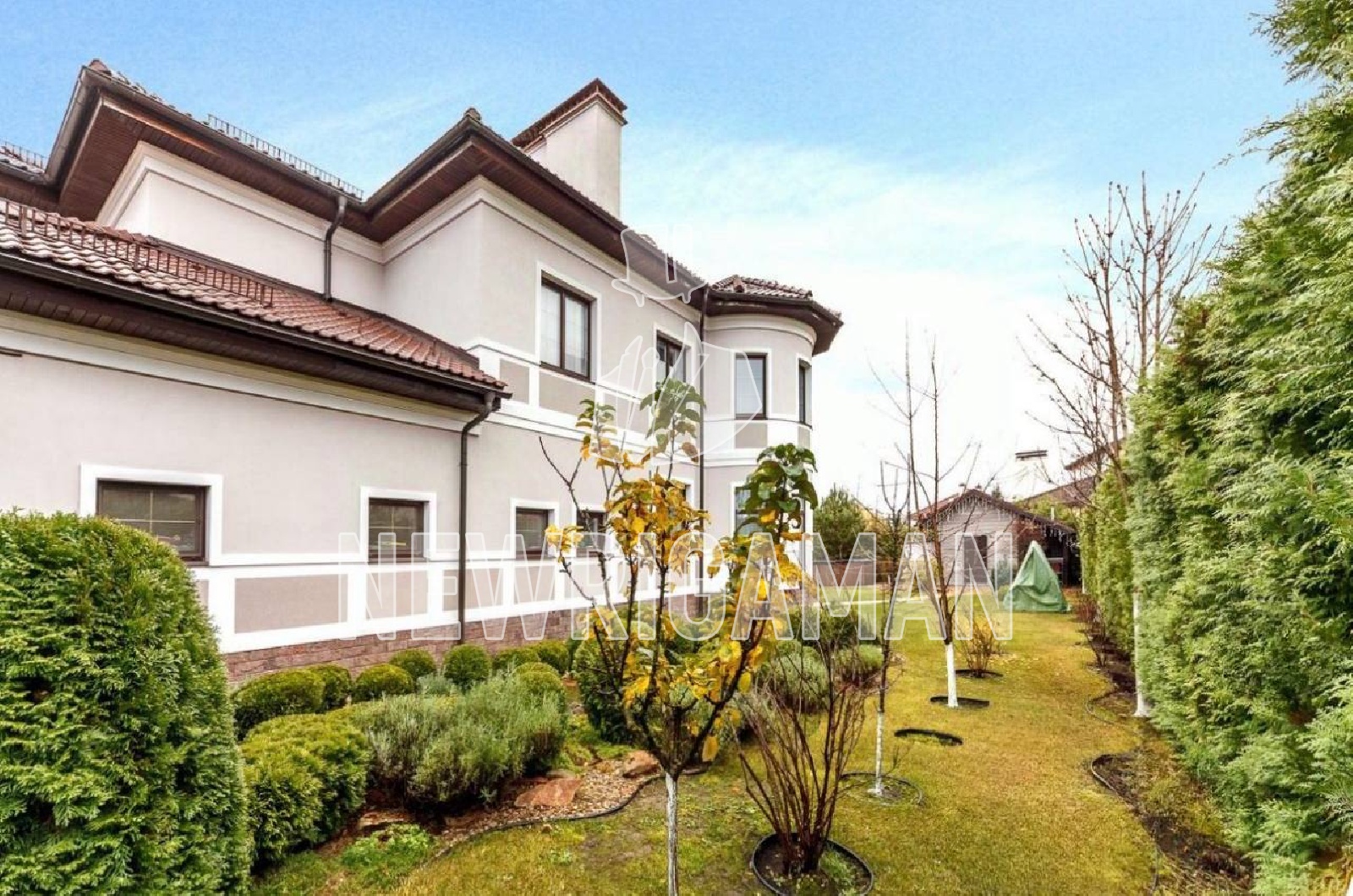 Продажа загородного дома общей площадью 570 кв.м. Коттеджный поселок Монтевиль. Новорижское шоссе, 24 км от МКАД. Дом построен в 2 этажа из кирпича. Выполнена дизайнерская отделка под ключ. Помимо основного дома на участке расположен гостевой дом площадью 190 кв.м., соединенные светлой отапливаемой галереей-оранжереей с основным домом. Мебель, паркет, керамогранит - все итальянских производителей, бытовая техника Miele. Отапливаемая галерея-оранжерея с выходом на террасу — это сердце всего владения. Уютное пространство с обилием света и растений, где можно собираться для семейных праздников, наслаждаясь видом на сад в любое время года. Два отдельных входа обеспечивают полное автономность каждого дома. На участке площадью 20 соток выполнены ландшафтные работы, по периметру высажены туи, сосны, гортензии, кусты сортовых роз, фруктовые деревья и кустарники, хвойники, лаванда, также имеется зона барбекю, сарай, подогреваемый бассейн.