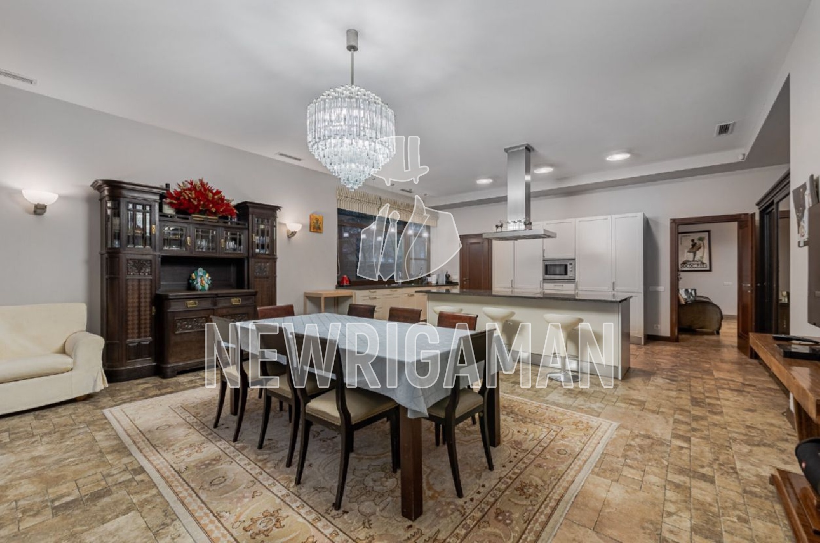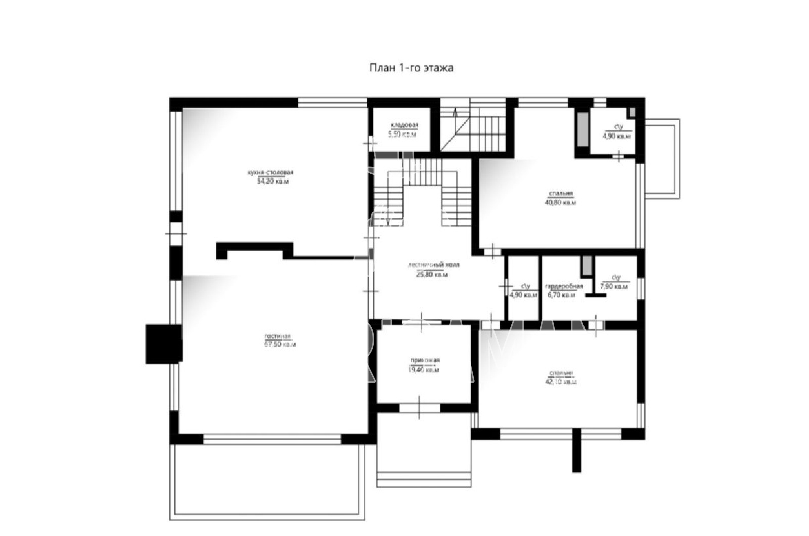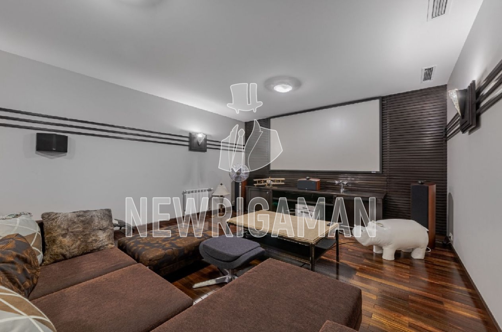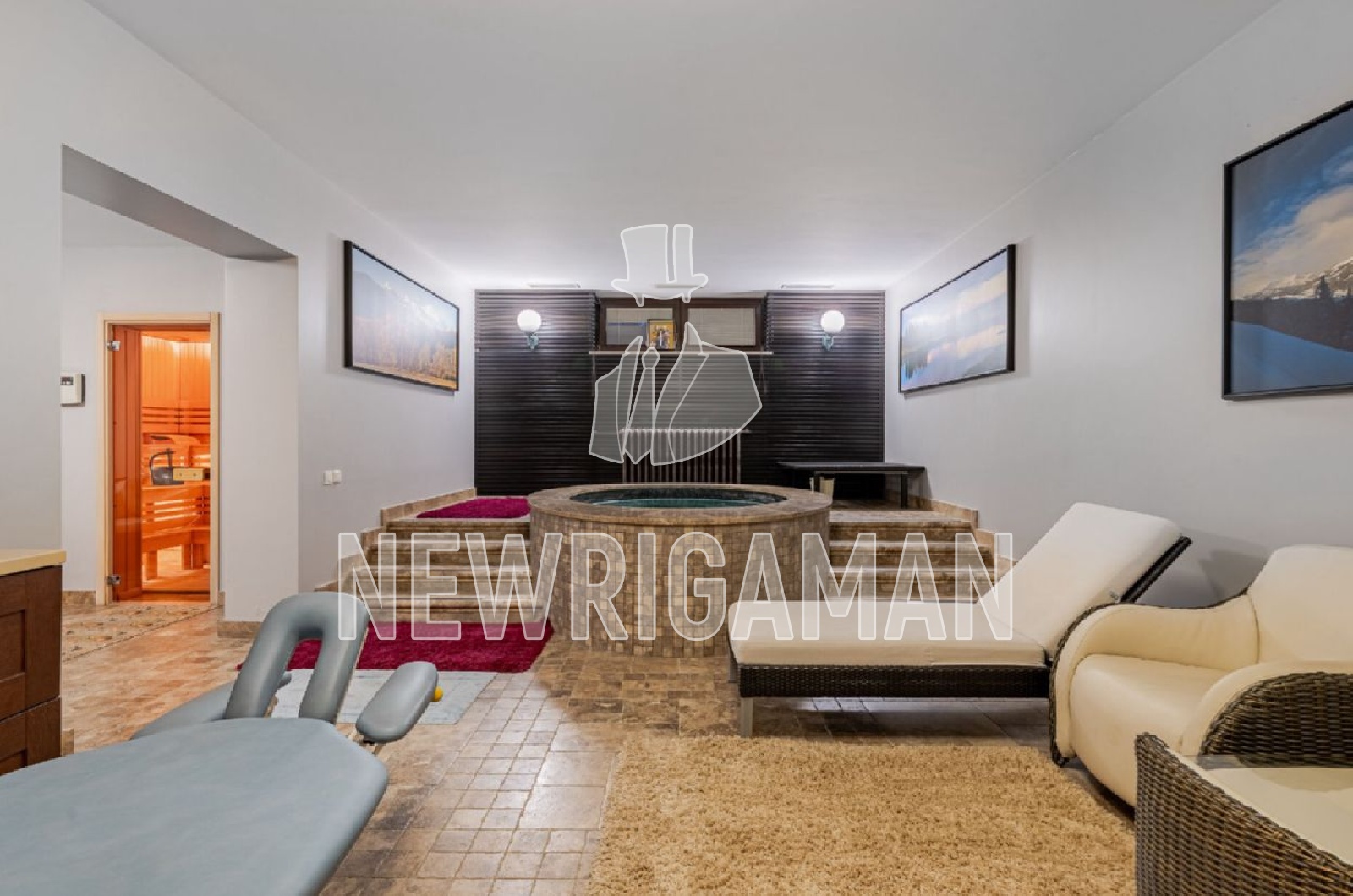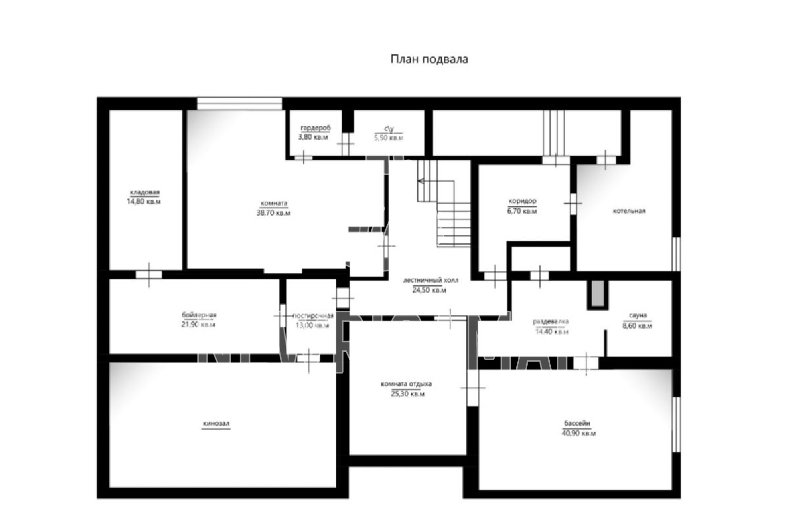 Цоколь - прачечная, кинозал, комната для персонала с кухней и с / у, спортзал, сауна, бассейн, купель, котельная.