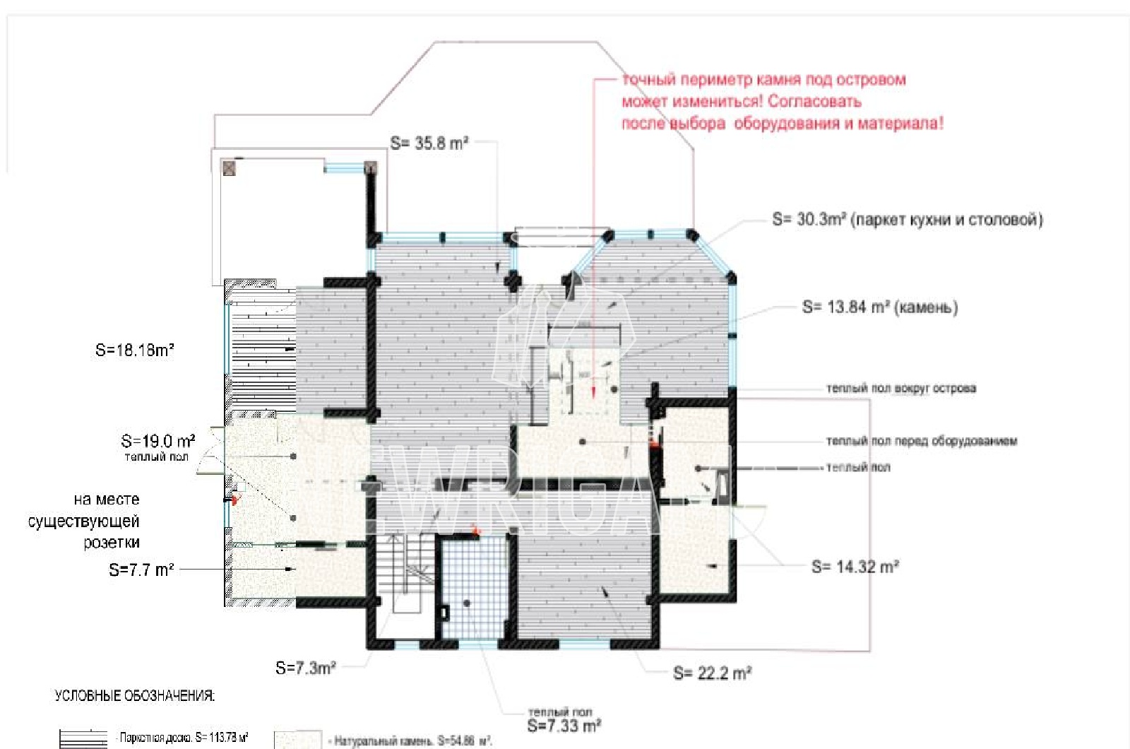 Цоколь - кинотеатр, игровая-спортзал, склад (70м2), санузел, гладильная, постирочная, оружейная, котельная.