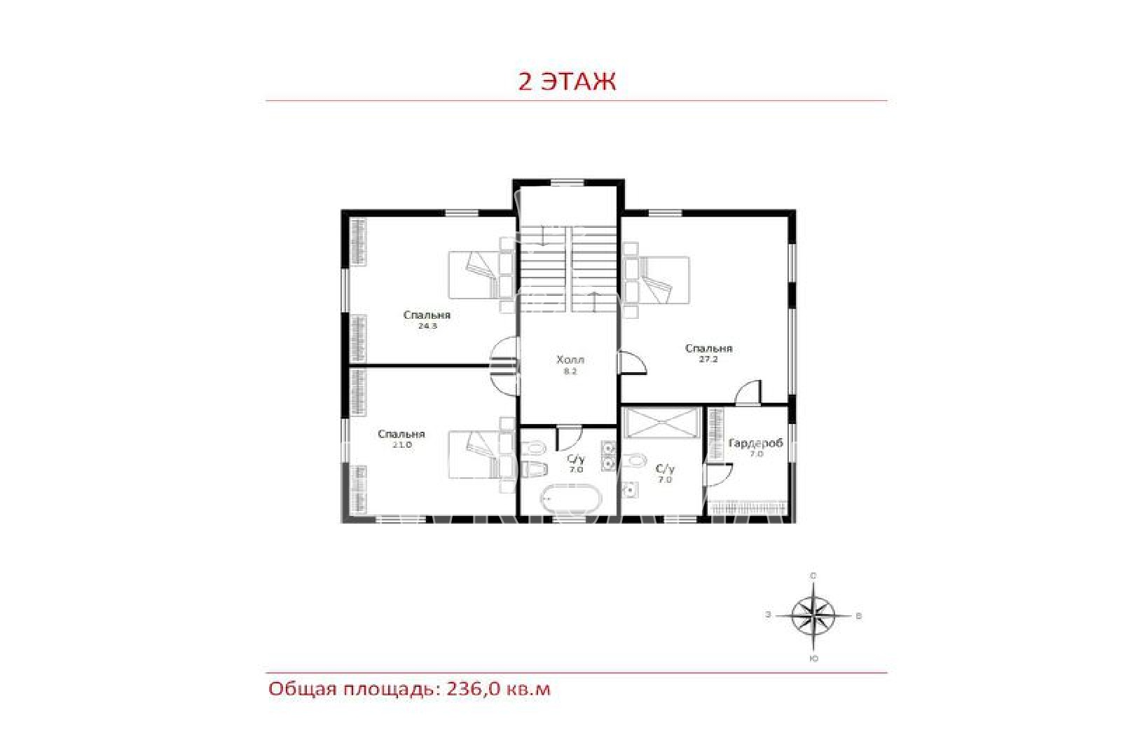 2 этаж - спальня со своей гардеробной и с/у, 2 спальни, с/у.