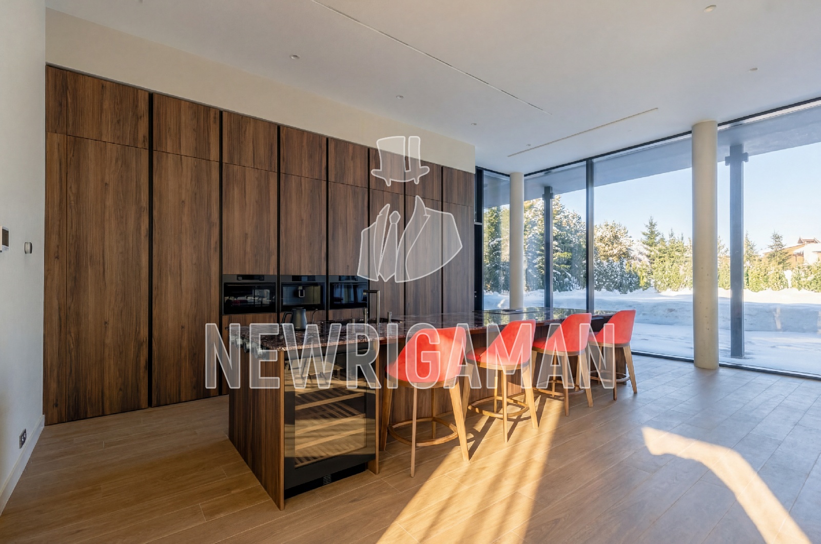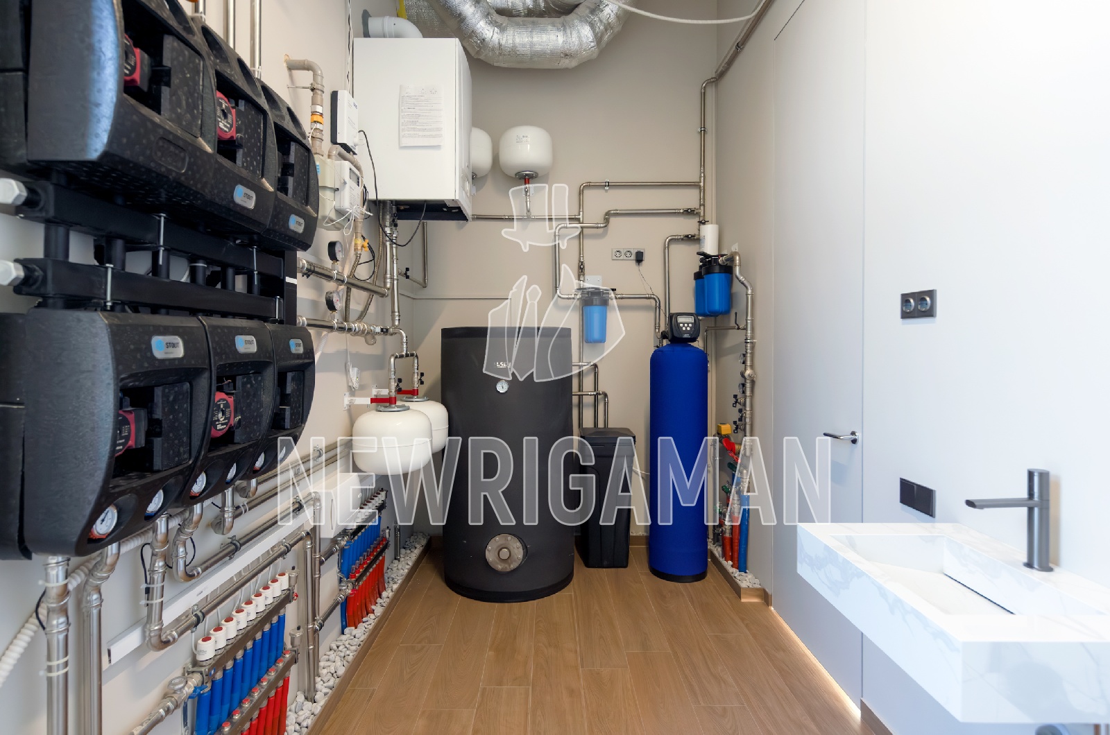 1 этаж - кухня-гостиная с дровяным камином и выходом на террасу, гостевая спальня со своим с/у, гардеробная, постирочная, бойлерная с