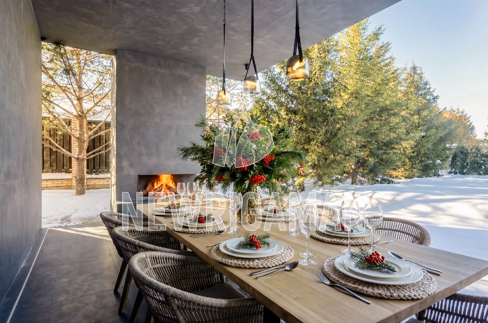 зоной барбекю - идеальное место для приемов в любое время года. Предусмотрен удобный сервисный проход из гаража сразу на