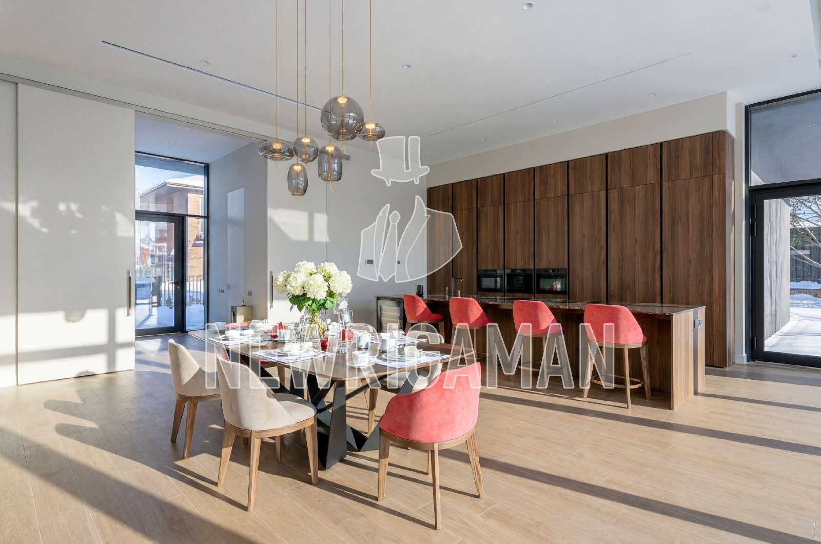 создают исключительное ощущение объема. Все жилые зоны и мастер-спальни ориентированы на задний двор (Open Space), что гарантирует тишину и полную изоляцию от соседей. Просторная терраса оборудована уличным камином и
