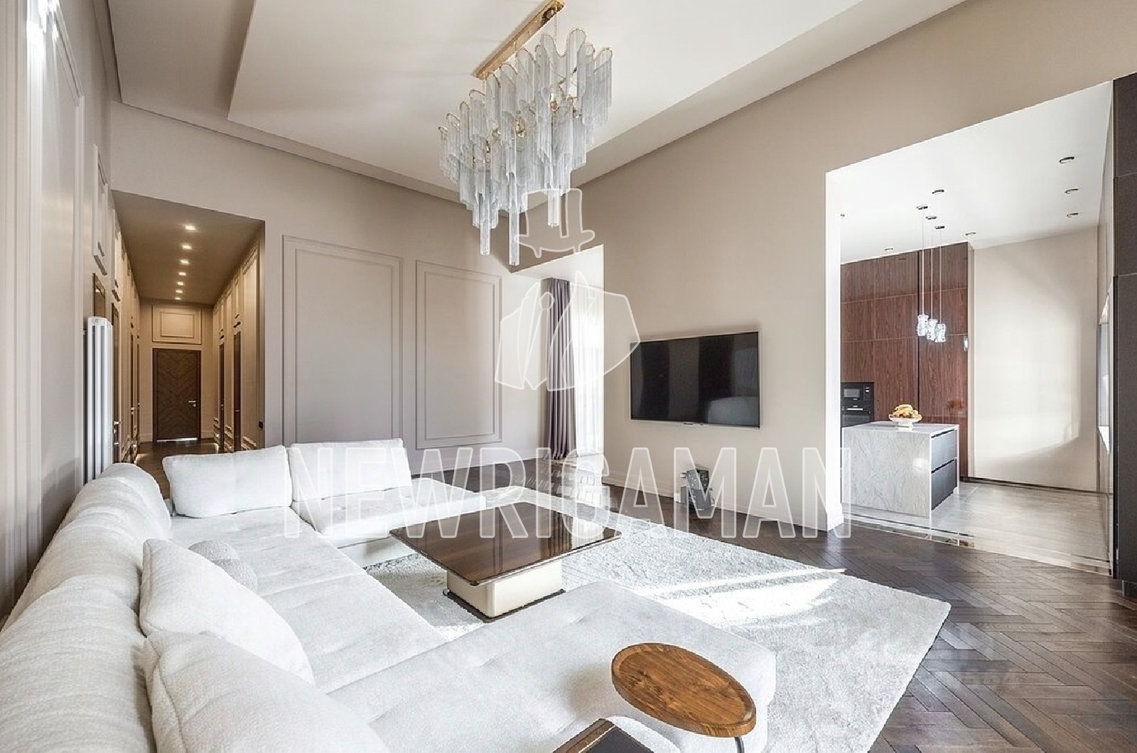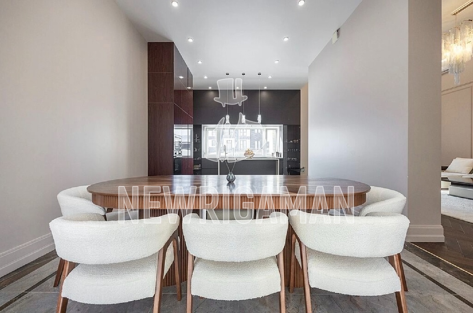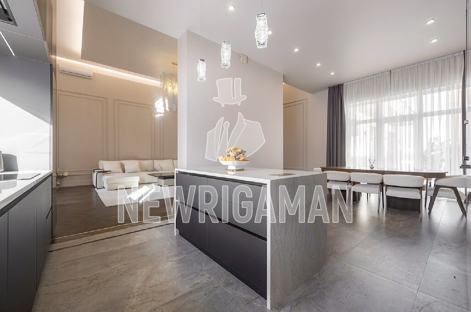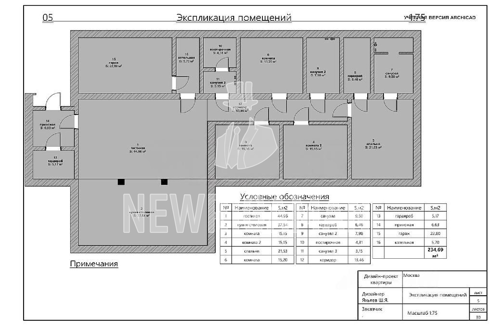 Планировка: гостиная 45 кв.м., кухня-столовая 38 кв.м., гостевой с/у, мастер-блок с собственной гардеробной и с/у, 2 детские комнаты, с/у, кабинет/спальня, гардеробная, постирочная, котельная с выходом в гараж на 1 м/м.