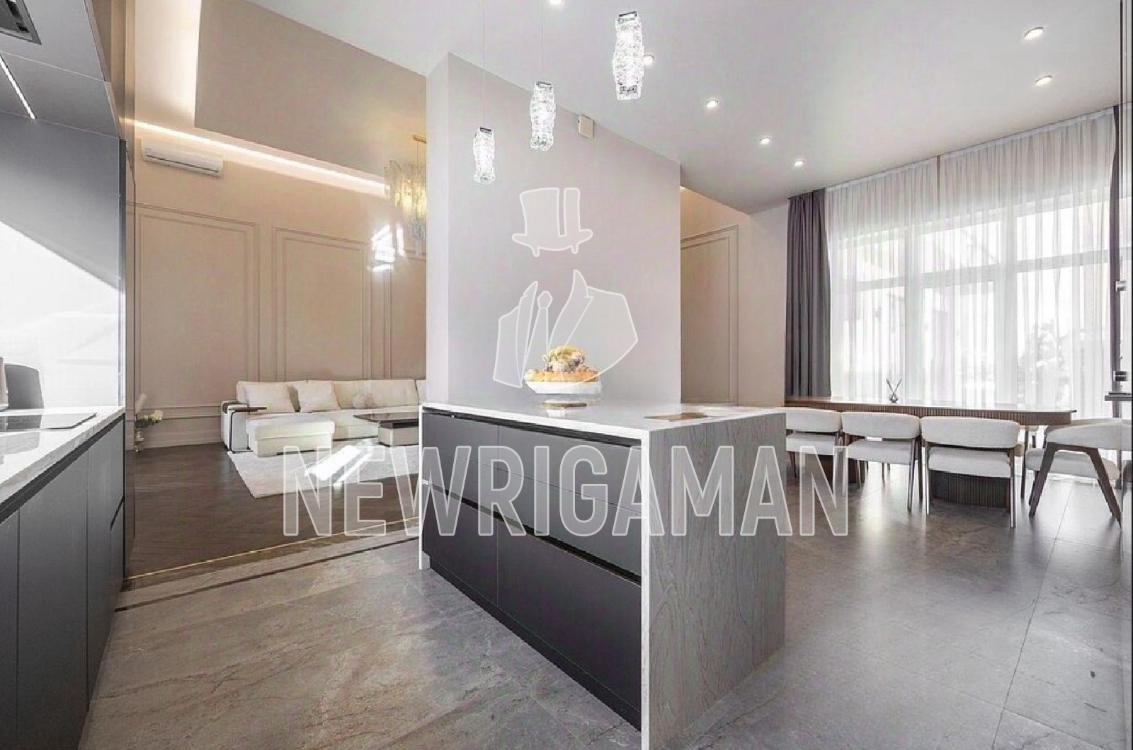 1 этаж - холл, большая гостиная, просторная кухня-столовая, гостевой санузел, мастер-блок с собственной гардеробной и санузлом, 2 детские комнаты, санузел, кабинет/спальня, гардеробная, постирочная, котельная с выходом в гараж на 1 м/м.