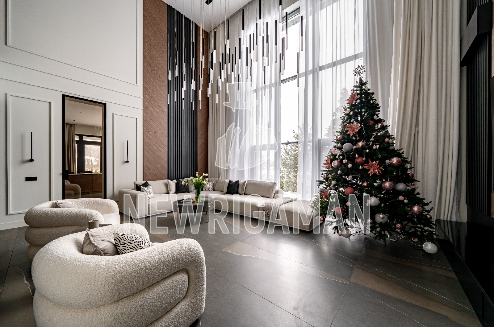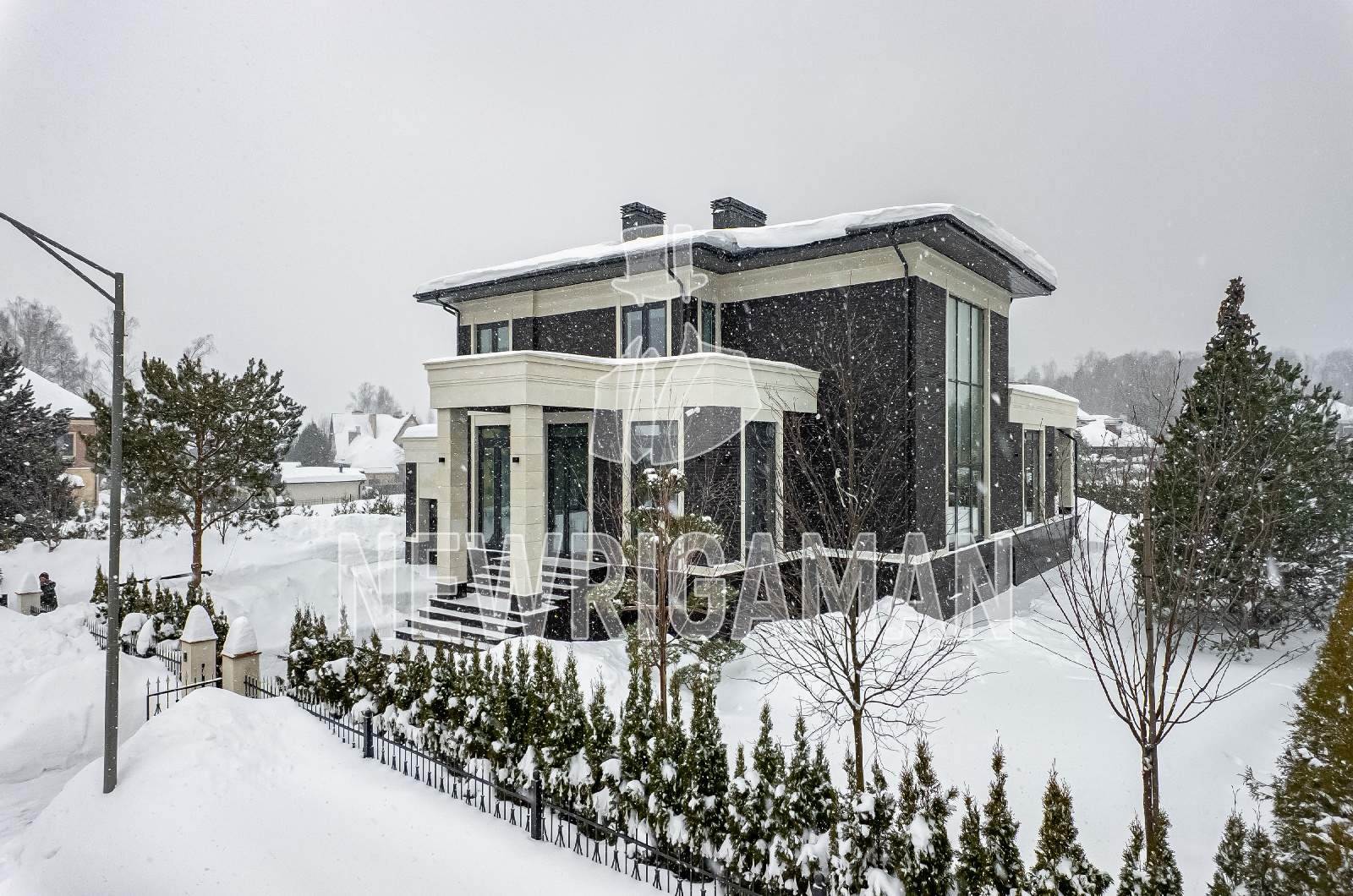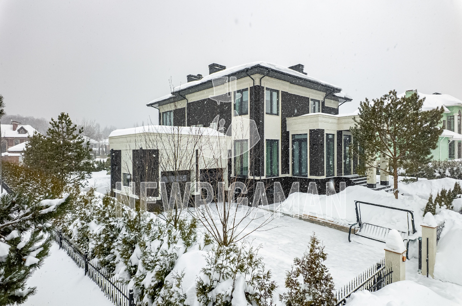 Продажа загородного особняка площадью 620 кв.м. Новорижское шоссе, 27 км от МКАД. Коттеджный поселок Крона. Дом построен в 2 этажа, под ключ. Фасад облицован натуральным камнем и клинкером ручной формовки, цоколь и отмостка выполнены из гранита. Главная особенность — второй свет в гостиной, наполняющий дом воздухом и естественным светом. Газовый котел Viessmann, система приточно-вытяжной вентиляции с рекуперацией и кондиционированием Blizzard и Hisense. Отопление на трубах Elsen с дизайнерскими радиаторами Arbonia. Отделка: широкоформатный керамогранит Italon Metropolis, инженерная доска Coswick, лестница из натурального дуба и шпонированные стеновые панели. Окна и двери: теплый алюминиевый профиль, межкомнатные двери Union. Сантехника: Villeroy & Boch, Laufen, Grohe. Просторный участок площадью 18 соток.
