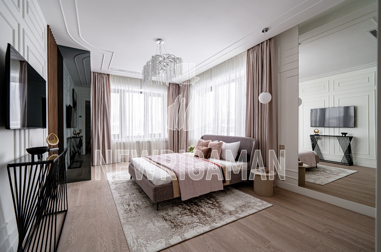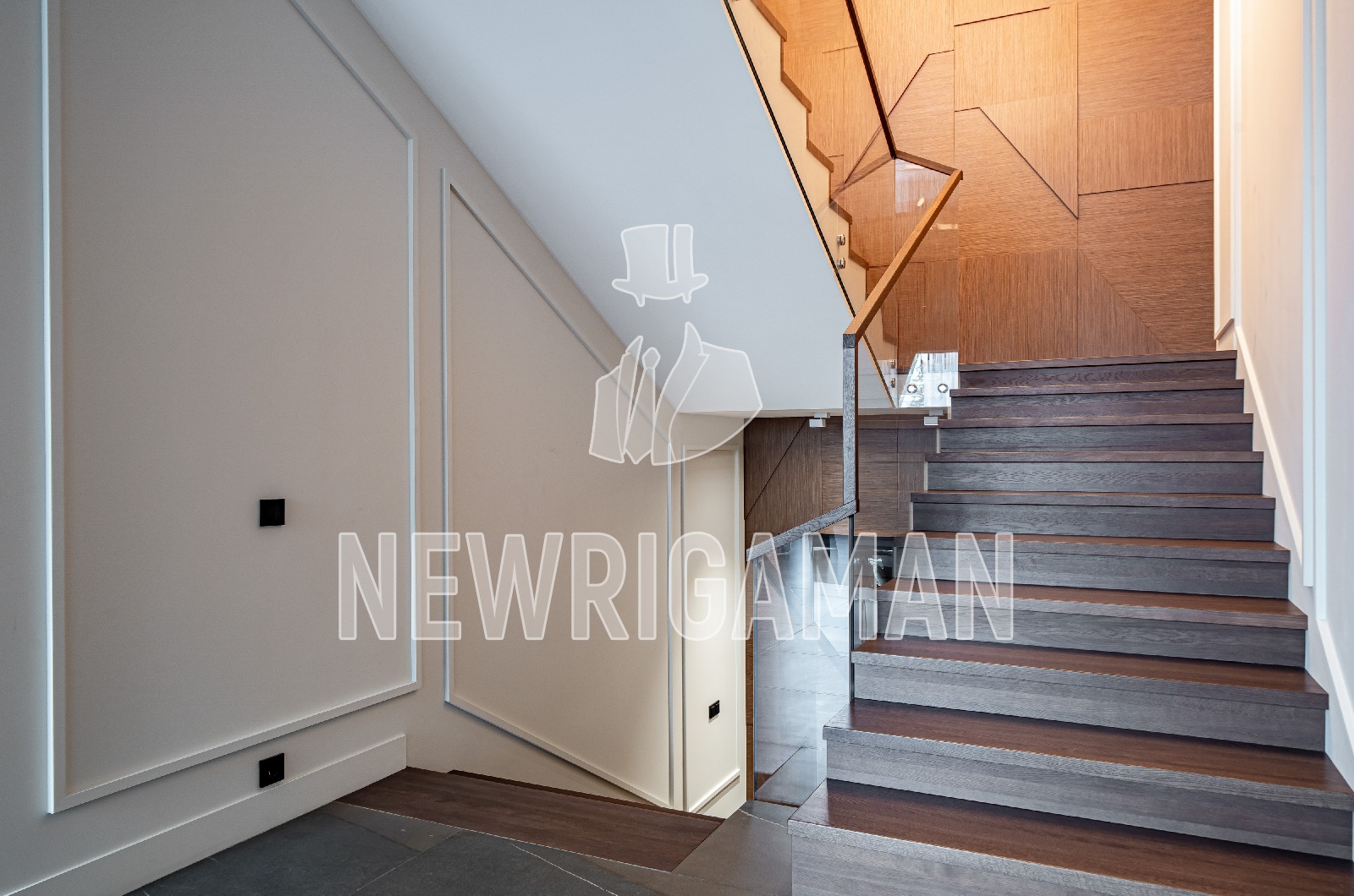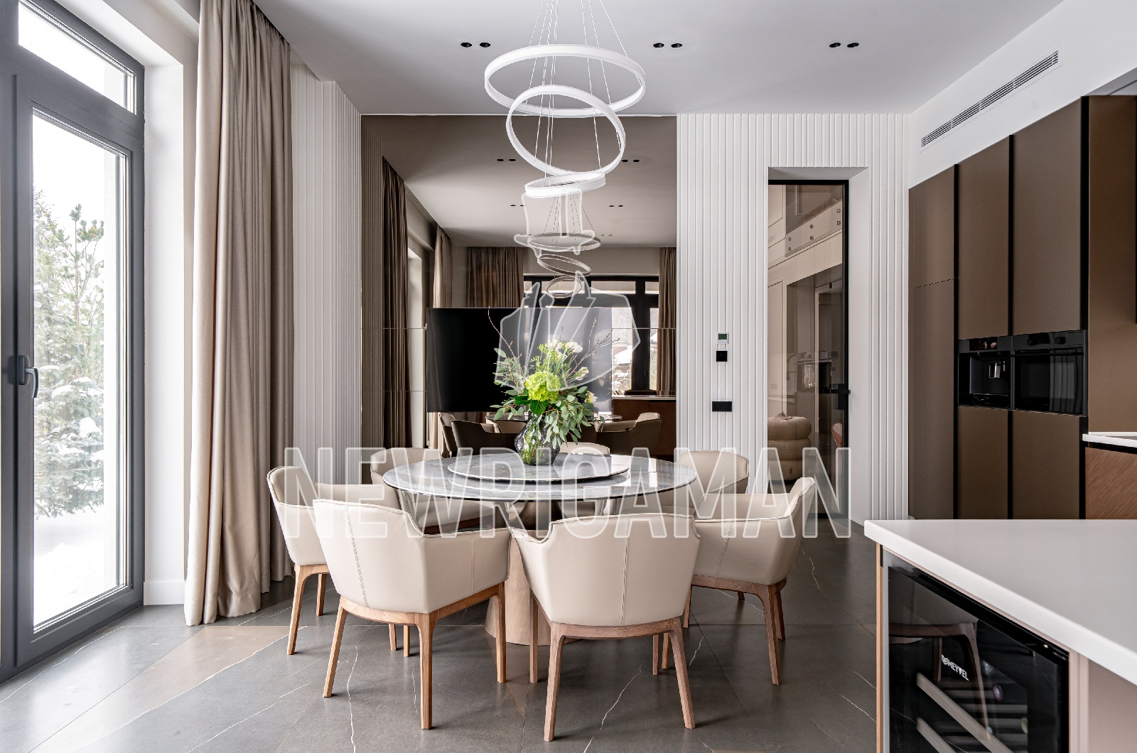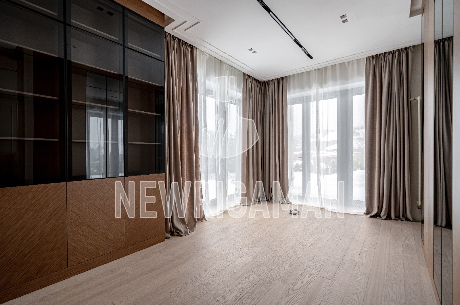 Продажа загородного особняка площадью 620 кв.м. Новорижское шоссе, 27 км от МКАД. Коттеджный поселок Крона. Дом построен в 2 этажа, под ключ. Фасад облицован натуральным камнем и клинкером ручной формовки, цоколь и отмостка выполнены из гранита. Главная особенность — второй свет в гостиной, наполняющий дом воздухом и естественным светом. Газовый котел Viessmann, система приточно-вытяжной вентиляции с рекуперацией и кондиционированием Blizzard и Hisense. Отопление на трубах Elsen с дизайнерскими радиаторами Arbonia. Отделка: широкоформатный керамогранит Italon Metropolis, инженерная доска Coswick, лестница из натурального дуба и шпонированные стеновые панели. Окна и двери: теплый алюминиевый профиль, межкомнатные двери Union. Сантехника: Villeroy & Boch, Laufen, Grohe. Просторный участок площадью 18 соток.
