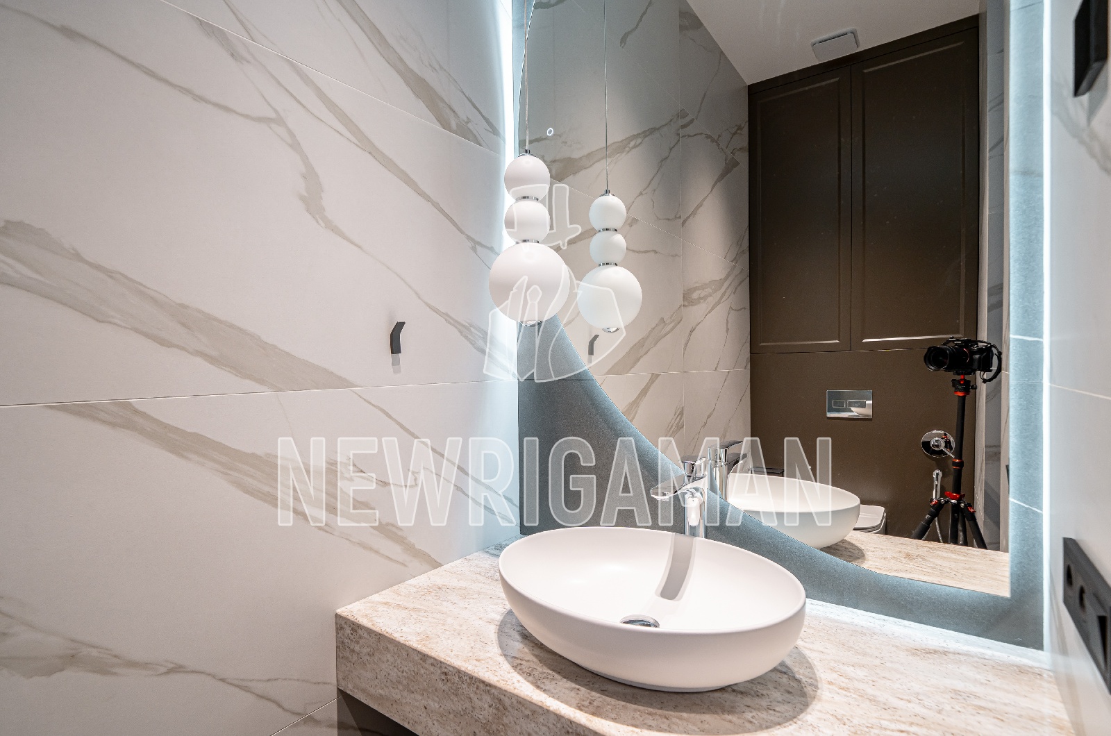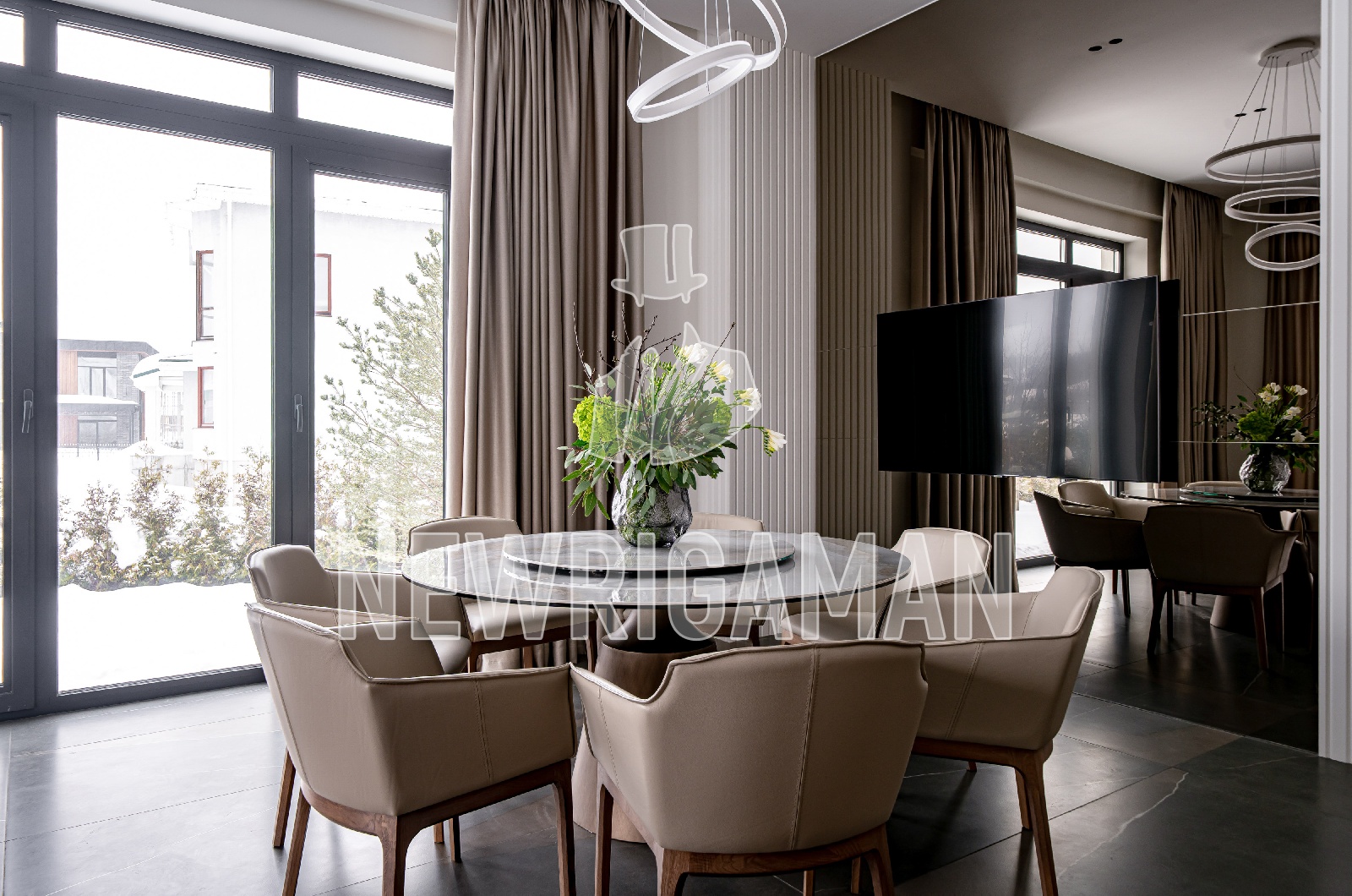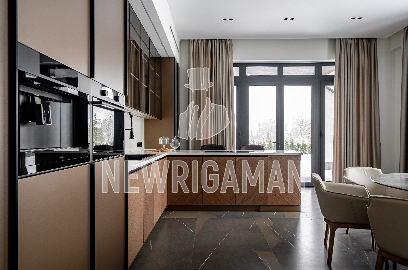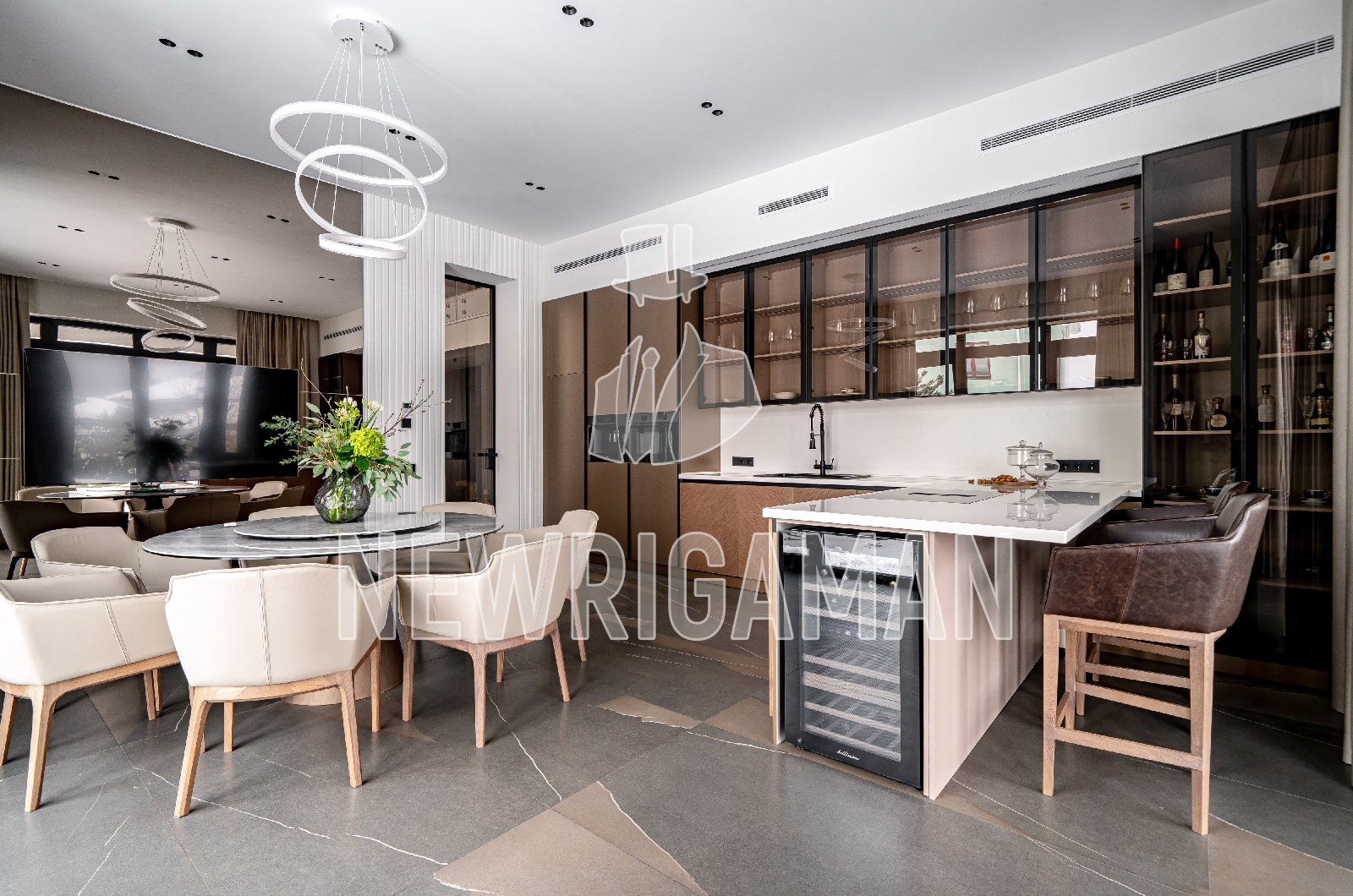 1 этаж - холл, гостиная, кухня-столовая оборудована островом со встроенной вытяжкой и премиальной техникой ASKO (включая винный шкаф и кофемашину), спальня с гардеробной и с/у, гостевая спальня с с/у, постирочная, гостевой с/у, гараж на 2 авто и 2 мотоцикла,