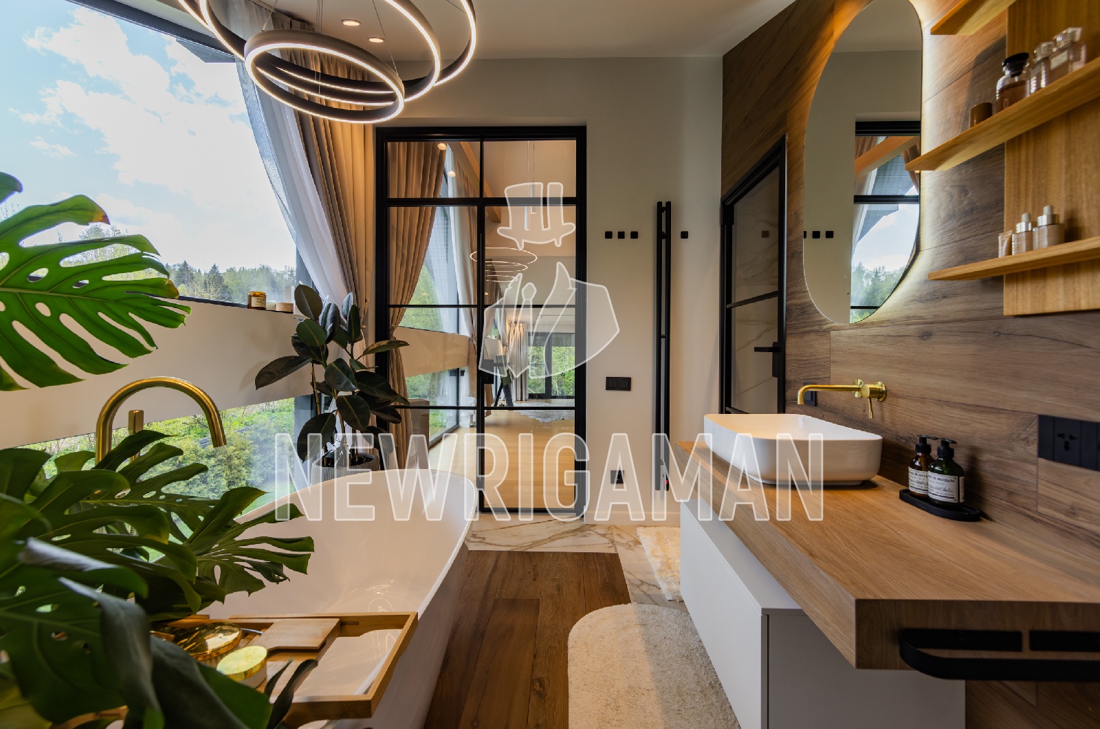 2 этаж - спальня с видом на лес, две персональные гардеробные, ванная комната с панорамным окном, гостевой блок и второй кабинет: две просторные комнаты, балкон, с/у.